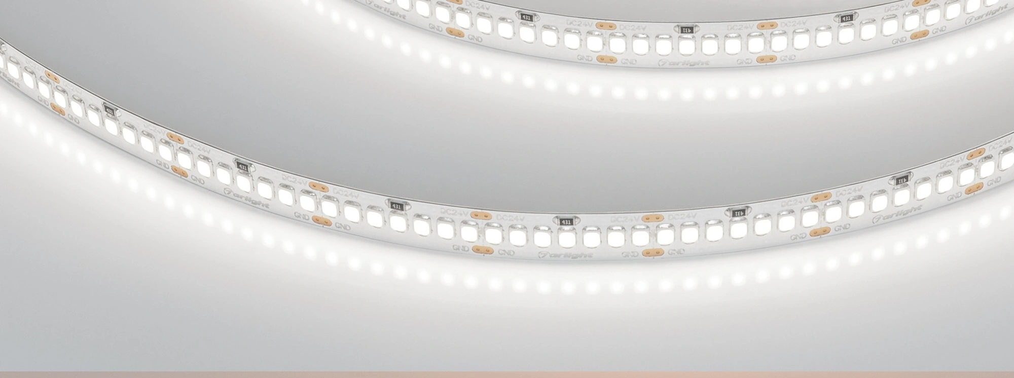Высокая эффективность >125 лм/Вт. Плотная установка светодиодов позволяет убрать точки светодиодов при использовании в алюминиевом профиле небольшой глубины с матовым рассеивателем. Основное освещение. Декоративные яркие линии.