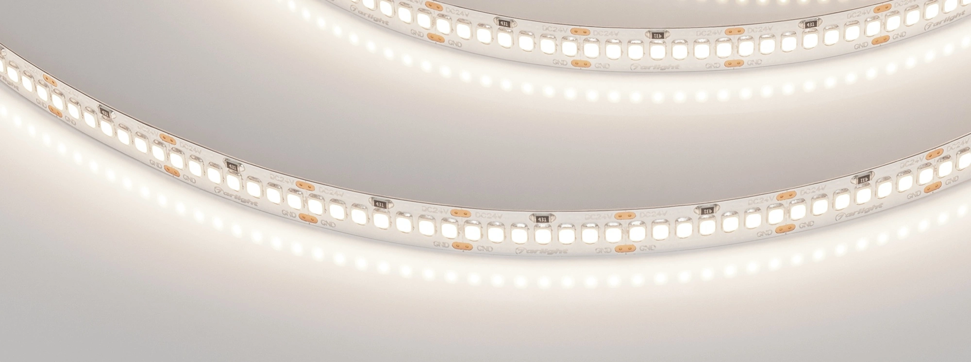 Высокая эффективность >125 лм/Вт. Плотная установка светодиодов позволяет убрать точки светодиодов при использовании в алюминиевом профиле небольшой глубины с матовым рассеивателем. Основное освещение. Декоративные яркие линии.