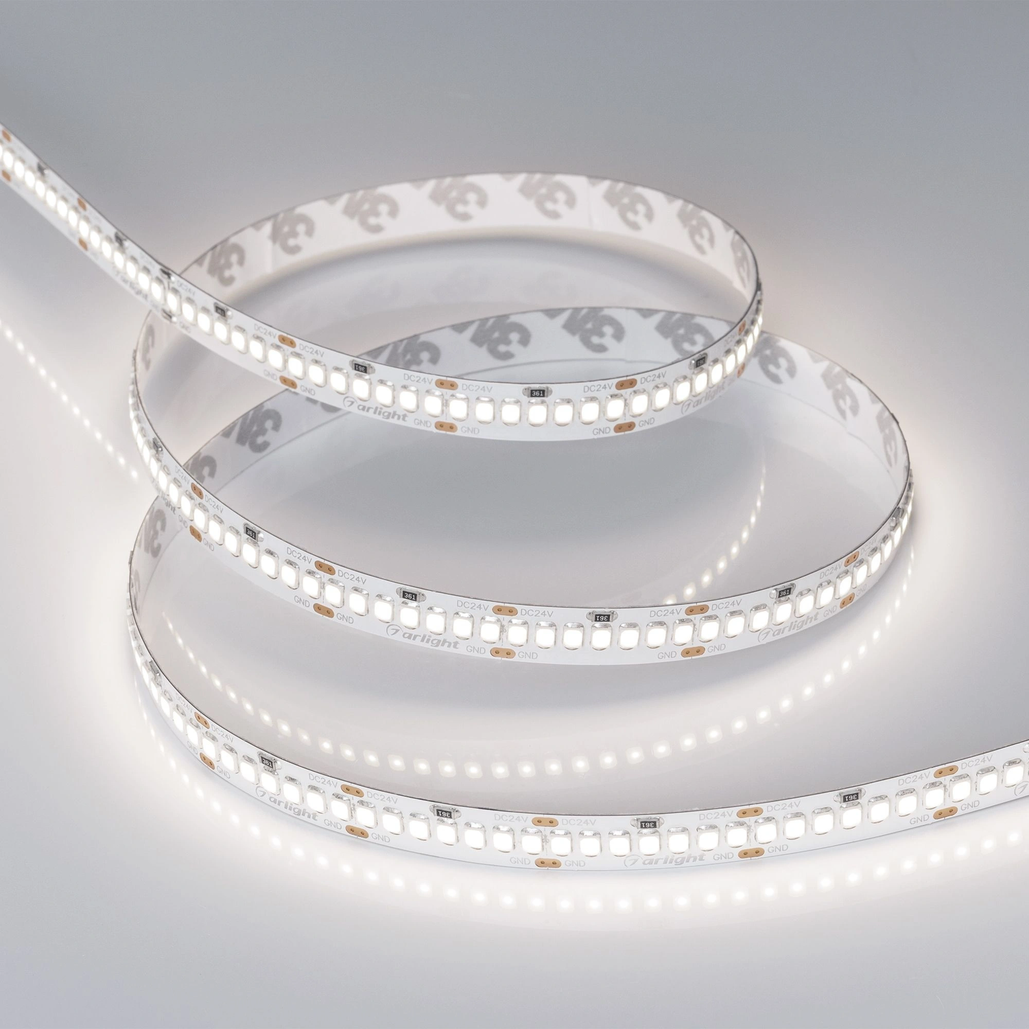 Светодиодная лента RT-A252, открытая. Светодиоды 2835, 252 шт/м (1260 шт на 5 м), белая плата, ширина 10 мм, скотч 3M. Цвет ДНЕВНОЙ 4000 K, цветопередача CRI>85, угол 120°. Питание 24V, мощность 11 Вт/м (55 Вт на 5 м). Размеры 5000x10x1.5 мм. Мин. отрезок 27.77 мм, 7 светодиодов. Цена за 1 м.