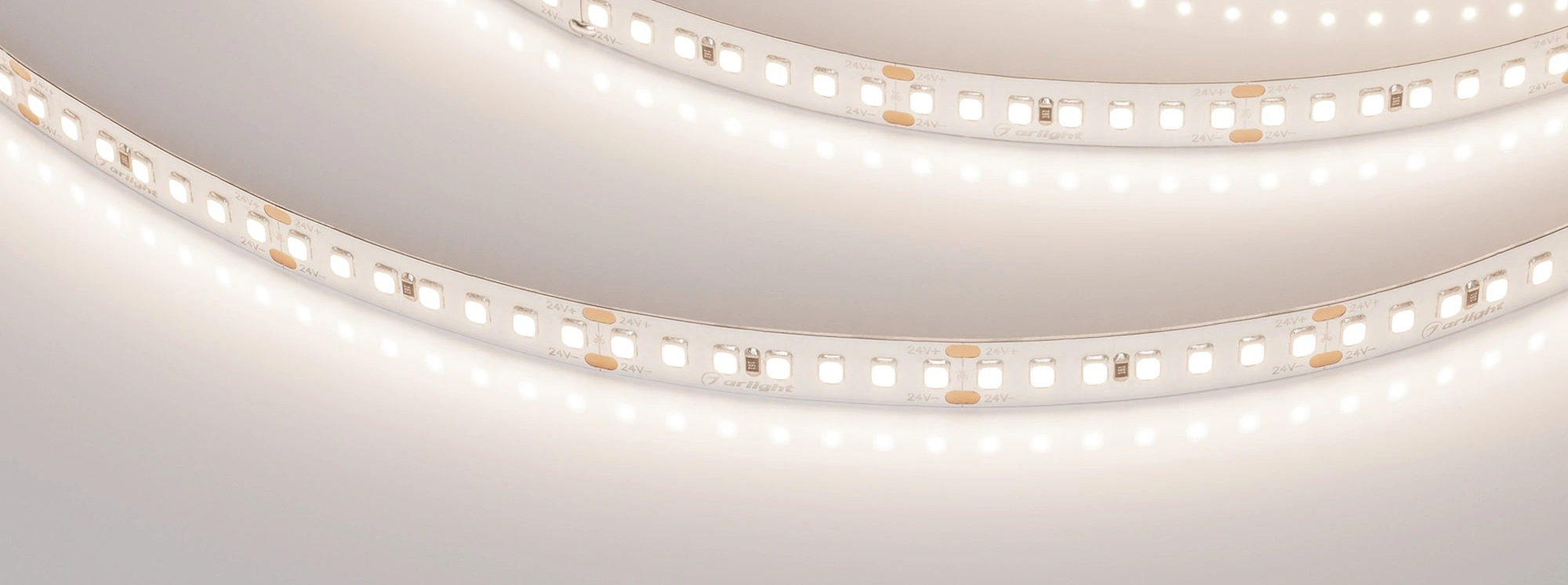 Светодиодная лента UL-A168, открытая. Светодиоды 2835, 168 шт/м (840 шт на 5 м), белая плата, ширина 10 мм, скотч 3M. Цвет ДНЕВНОЙ 4000 K, цветопередача CRI>90, угол 120°. Питание 24V, мощность 17 Вт/м (85 Вт на 5 м). Размеры 5000x10x1.5 мм. Мин. отрезок 41.67 мм, 7 светодиодов. Цена за 1 м.