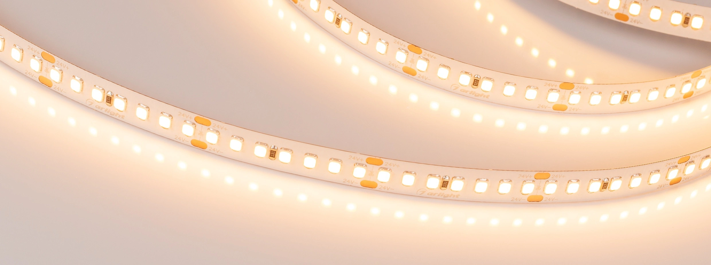 Светодиодная лента LUX шириной 10 мм и мощностью 17 Вт/м. Светодиоды SMD 2835 (168 шт/м) теплого белого цвета свечения (2900–3100 К). Напряжение питания 24 В. Минимальный отрезок 41.67 мм (7 светодиодов). Для декоративной подсветки интерьеров, потолочных ниш, рабочих зон кухни, мебели. Подсветка рекламных конструкций и витрин.