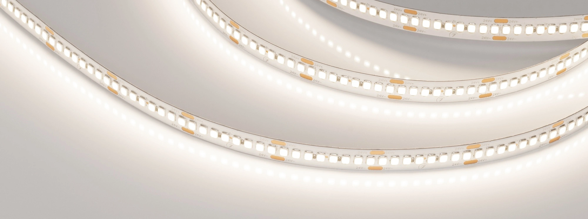 Открытая высокоэффективная 150 лм/Вт светодиодная лента. Светодиоды SMD 2835 (240 шт/м) белого дневного цвета свечения (4000 К), минимальный отрезок 33.33 мм, 8 светодиодов. Для энергоэффективного освещения. Равномерная засветка больших поверхностей. Предназначена для применения в основном освещении жилых и офисных помещений. Подсветка рекламных конструкций и витрин, декоративной подсветки интерьера, потолочных ниш. Обязательная установка на профиль.