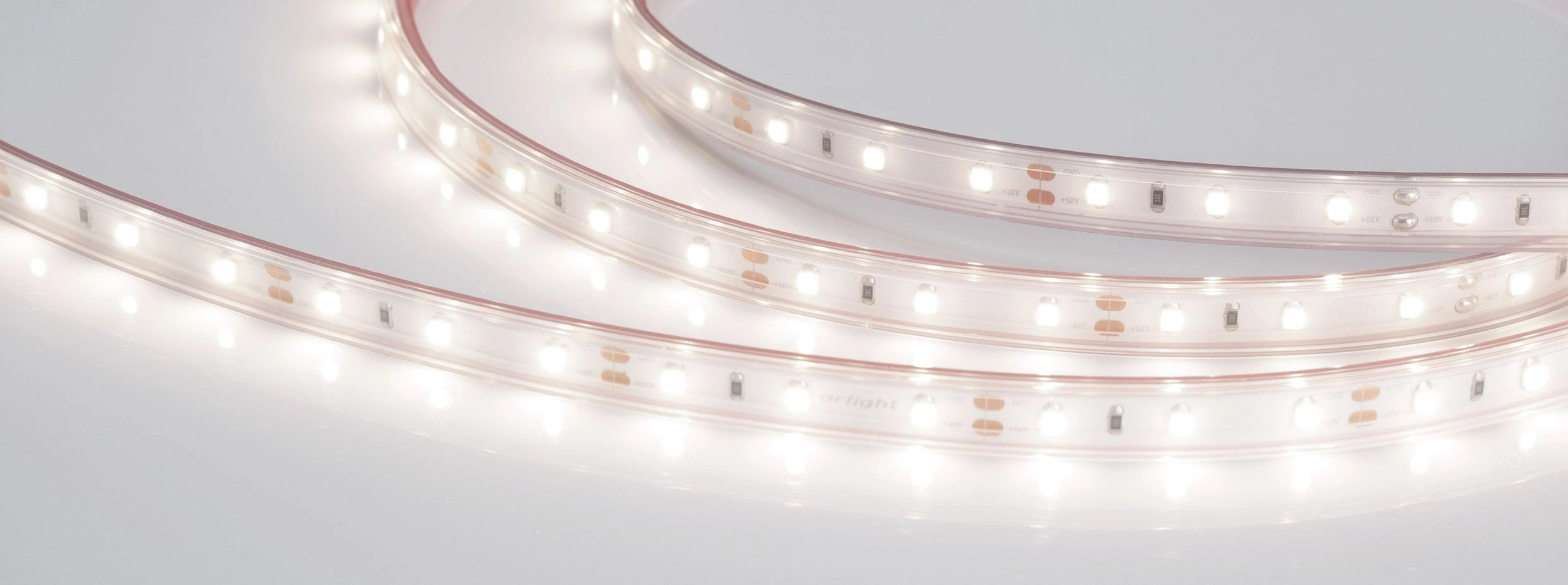Светодиодная лента RT-PS-A60, герметичная IP67 (PS-силиконовая экструзия). Светодиоды 2835, 60 шт/м (300 шт на 5 м), белая плата, ширина 10 мм, скотч 3M. Цвет ДНЕВНОЙ 4000 K, цветопередача CRI>85, угол 120°. Питание 12V, мощность 4.8 Вт/м (24 Вт на 5 м). Размеры 5000x10x5 мм. Мин. отрезок 50 мм, 3 светодиода. Цена за 1 м.