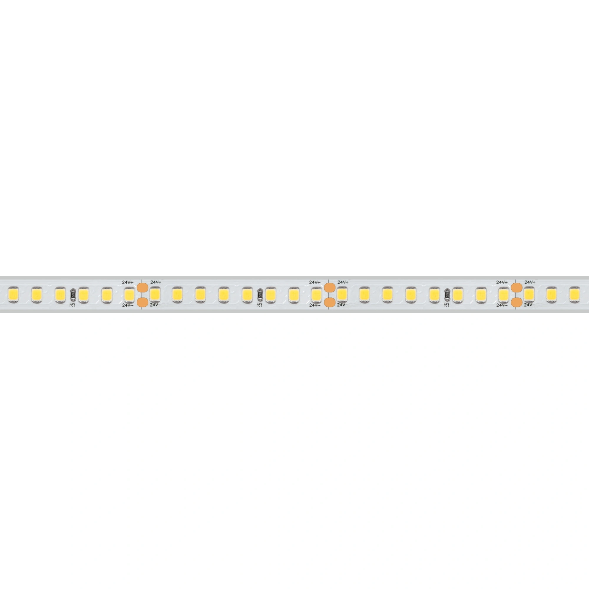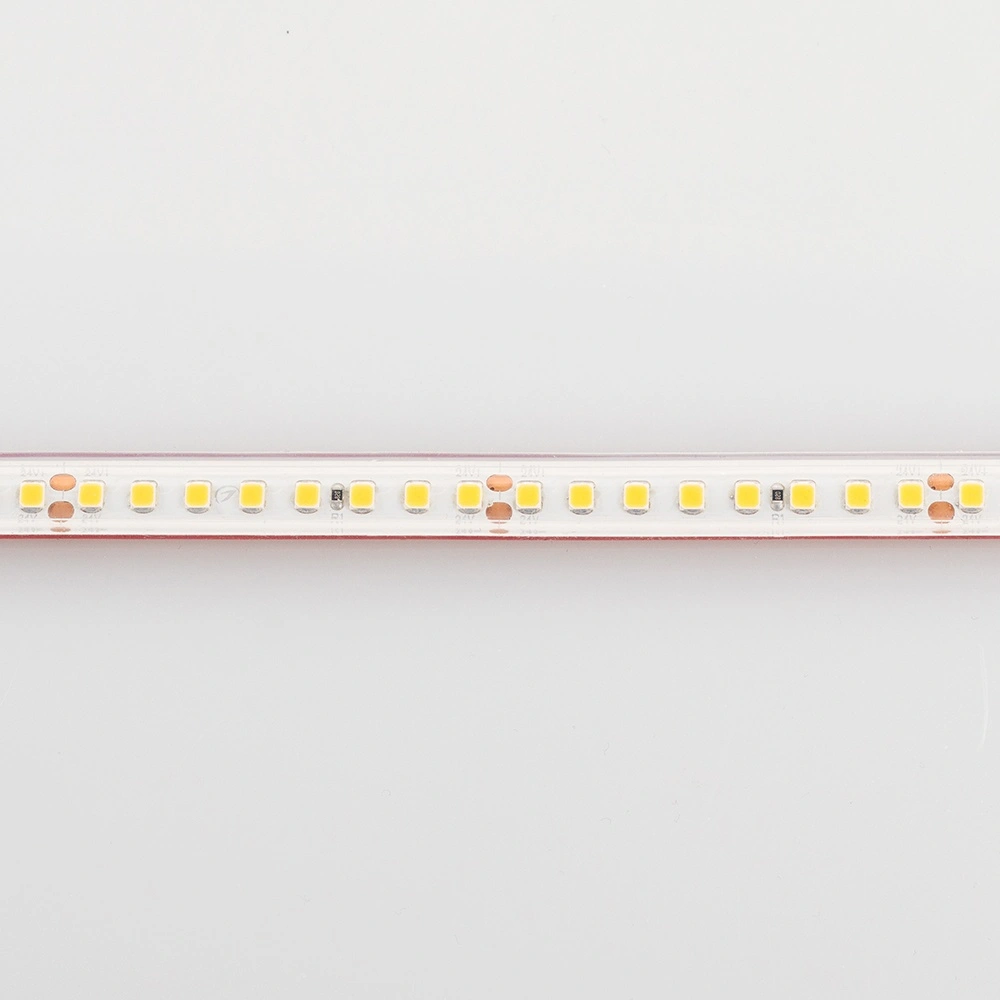 Герметичная светодиодная лента шириной 10 мм в силиконовой трубке (экструзия, без сдвига ЦТ) с высокой степенью пылевлагозащиты IP67. Светодиоды SMD 2835 (160 шт/м) теплого белого цвета свечения (2600 - 2800 К), индекс цветопередачи CRI>85. Мощность 12 Вт/м, напряжение питания 24 В. Минимальный отрезок 50 мм (8 светодиодов). Освещение интерьеров и создание декоративной подсветки. Оформление наружной рекламы и витрин. Использование в помещениях и на улице.