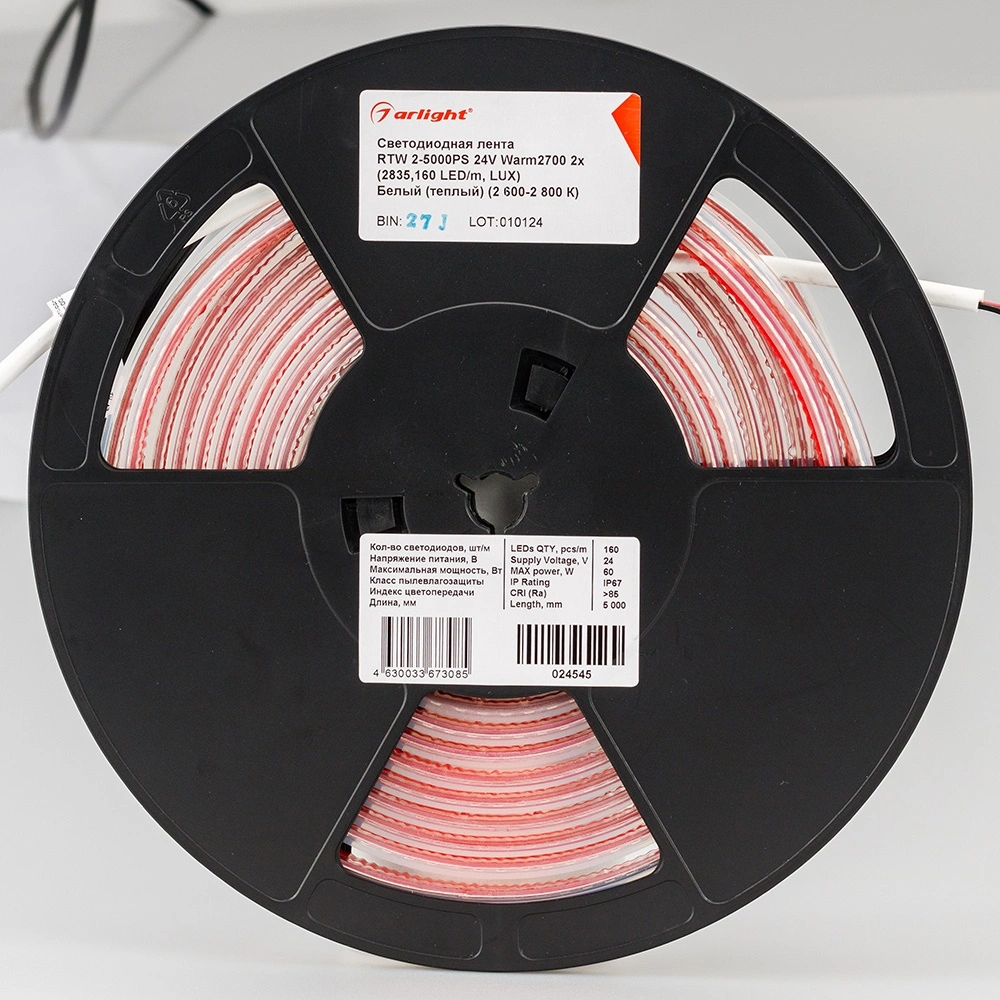 Герметичная IP67 Лента LUX, светодиоды smd 2835, 160шт/м (800шт на 5м). Эффективность 150 лм/Вт, белая плата 8мм, скотч 3М. Цвет ТЁПЛЫЙ 2600-2800K. Угол 120°, цветопередача CRI>85. Питание 24V, мощность 12 Вт/м (60 Вт на 5м). Размеры 5000х10х5мм. Мин.отрезок 50мм, 8 светодиодов. Цена за 1м.