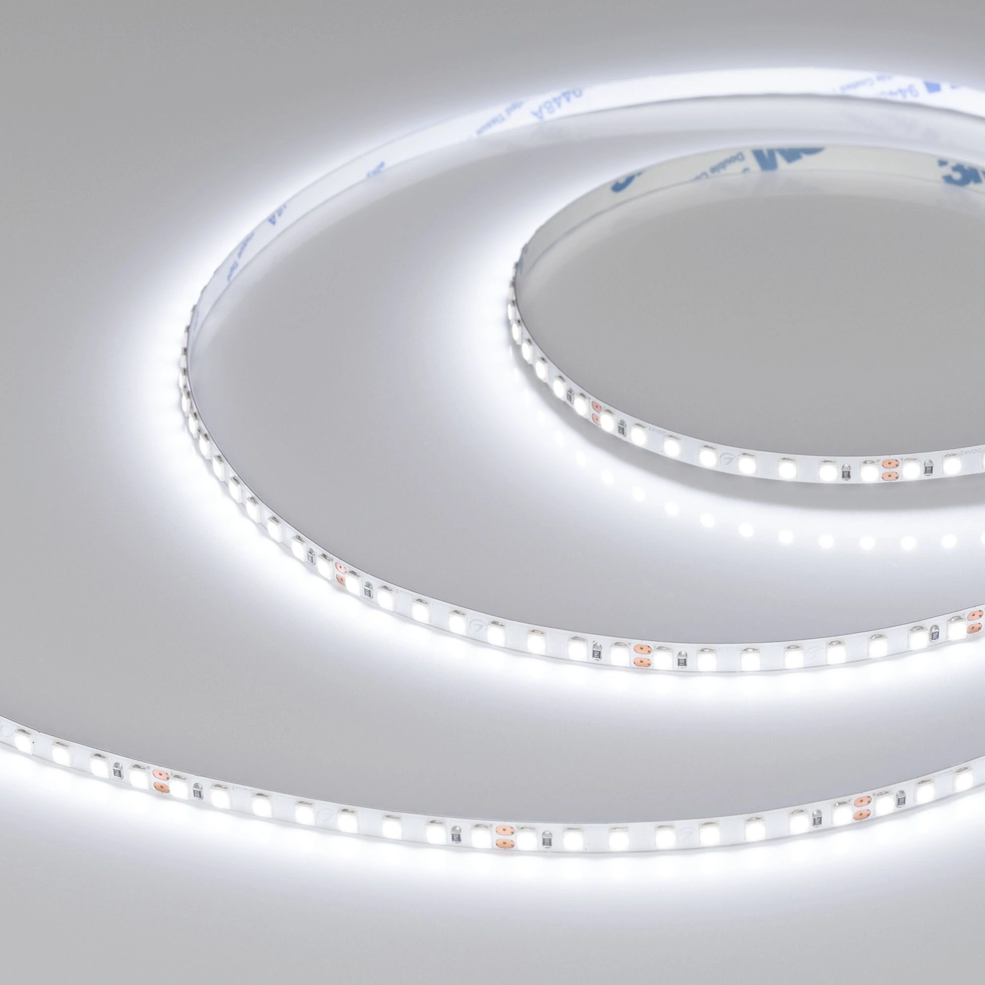 Светодиодная лента RT-A160, открытая IP20. Светодиоды 2835, 160 шт/м (800 шт на 5 м), белая плата 5 мм, скотч 3M. Цвет БЕЛЫЙ 6000 K , цветопередача CRI>90 , угол 120°. Питание 24 В, мощность 9.6 Вт/м (48 Вт на 5 м). Размеры 5000x5x1.5 мм. Мин.отрезок 50 мм, 8 светодиодов. Цена за 1м.