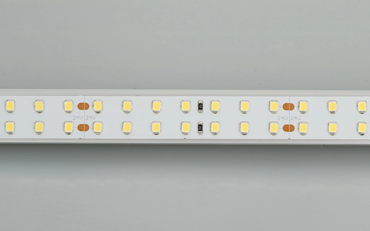 Гибкая лента LUX, светодиоды smd 2835, 196 шт/м (980шт на 5м), белая плата 15 мм, скотч 3М. Цвет ДНЕВНОЙ 3800-4200K. Питание 24V, мощность 20 Вт/м (100 Вт на 5м), угол 120°, цветопередача CRI 95..98. Размеры 5000х15x1.5мм. Мин.отрезок 71.43мм, 14 светодиодов. Цена за 1м.