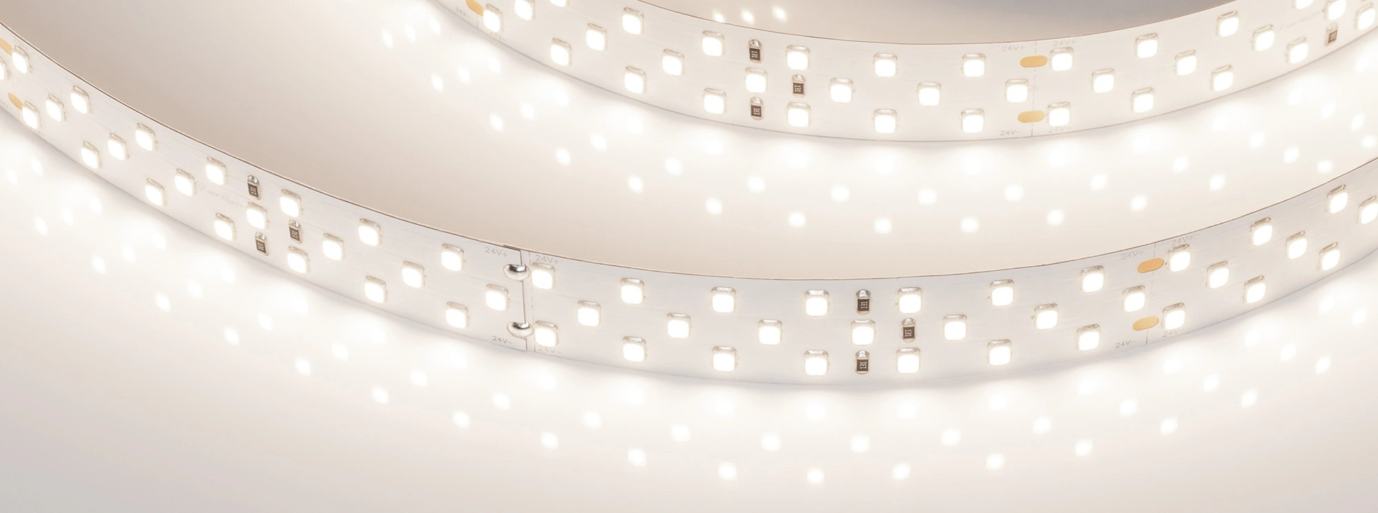 Светодиодная широкая лента RT-A252, открытая. Светодиоды 2835, 252 шт/м (1260 шт на 5 м), белая плата, ширина 19 мм, скотч 3M. Цвет ДНЕВНОЙ 4000 K, цветопередача CRI 95..98, угол 120°. Питание 24V, мощность 27 Вт/м (135 Вт на 5 м). Размеры 5000x19x1.5 мм. Мин. отрезок 83.3 мм, 21 светодиода. Цена за 1 м.