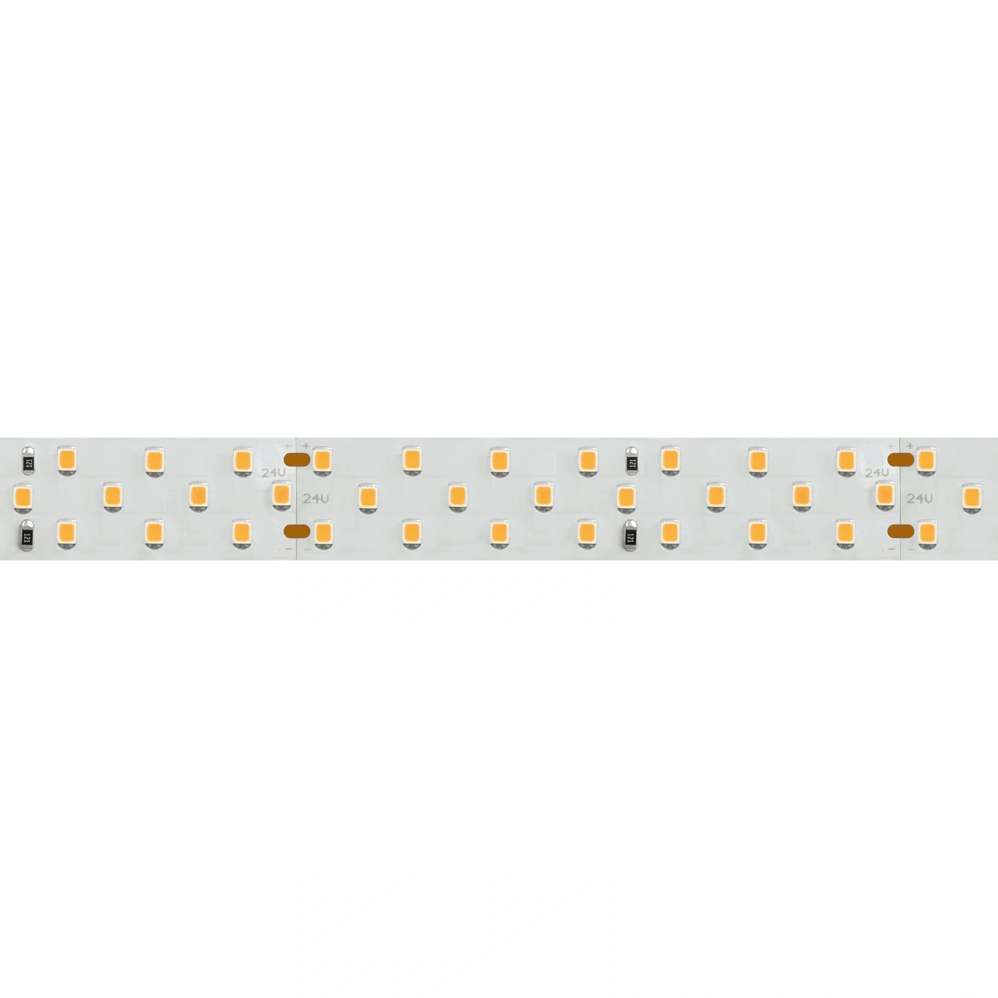 Поставка под заказ от 600 м.Гибкая лента LUX, светодиоды smd 2835, 252 шт/м (1260шт на 5м), белая плата 19 мм, скотч 3М. Цвет ТЕПЛЫЙ 2600-2800K. Питание 24V, мощность 27 Вт/м (135 Вт на 5м), угол 120°, цветопередача CRI 95..98. Размеры 5000х19x1.5мм. Мин.отрезок 83.33мм, 21 светодиод. Цена за 1м.