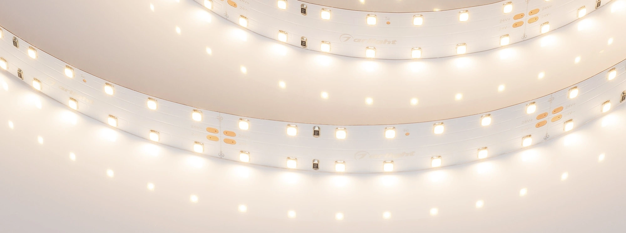Гибкая лента LUX, светодиоды smd 2835, 140шт/м (672шт на 4.7м), белая плата 20мм, скотч 3М. Цвет ТЁПЛЫЙ 3500K. Питание 24V, мощность 22 Вт/м (103.7 Вт на 4.7м), угол 120°, цветопередача CRI>85. Размеры 4712х20x1.5мм. Мин.отрезок 98мм, 14 шт светодиодов. Пакет 4,7м. Цена за 1м.
