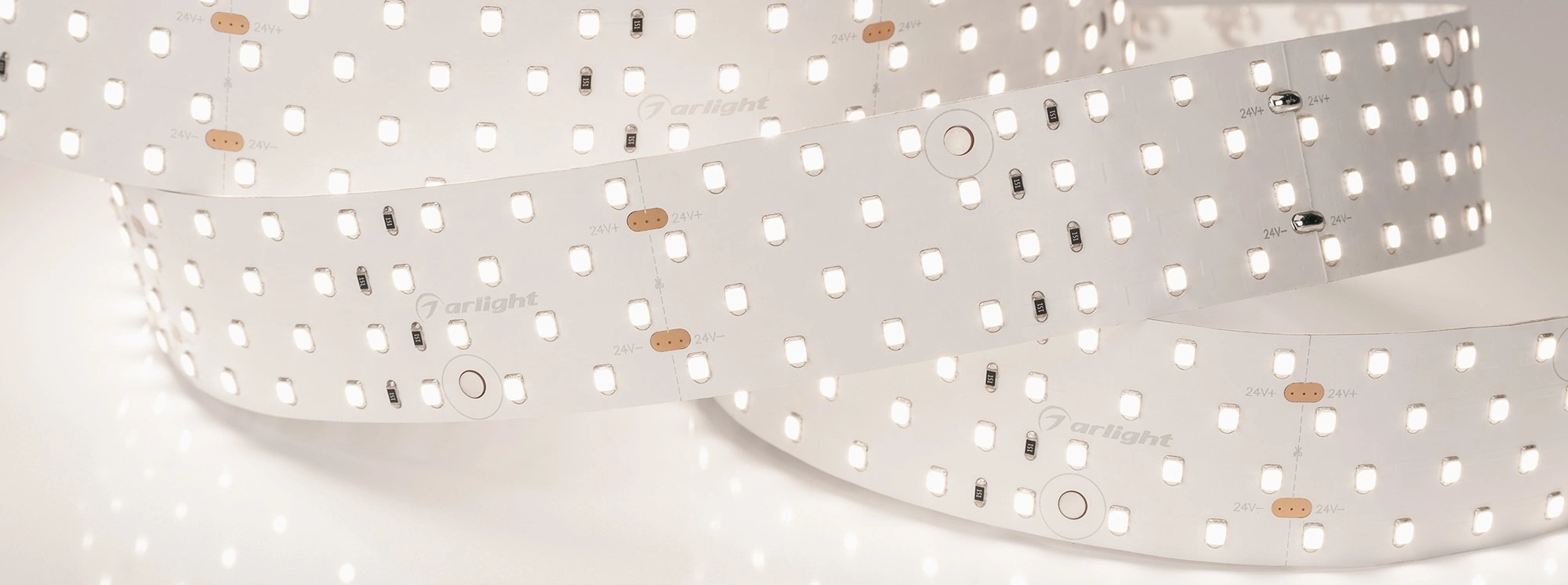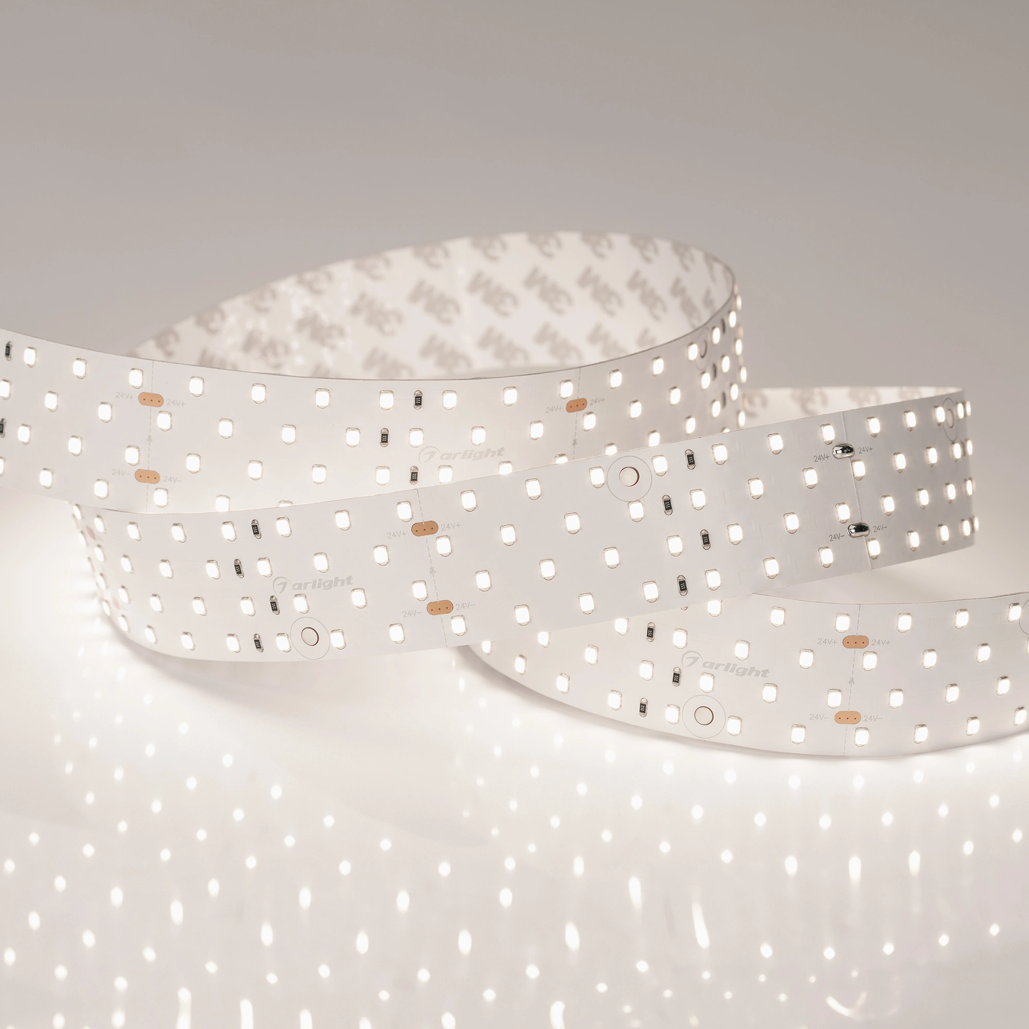 Широкая четырехрядная лента LUX шириной 36 мм с очень высоким индексом цветопередачи CRI>98 и высокой световой эффективностью. Светодиоды SMD 2835 (280 шт/м) с дневным белым цветом свечения (3800–4200 К). Мощность 30 Вт/м, напряжение питания 24 В. Минимальный отрезок 100 мм (28 светодиодов). Встроенные широкие линии света для основного освещения. Создание накладных и подвесных широких светильников из алюминиевого профиля с равномерным свечением по всей длине.