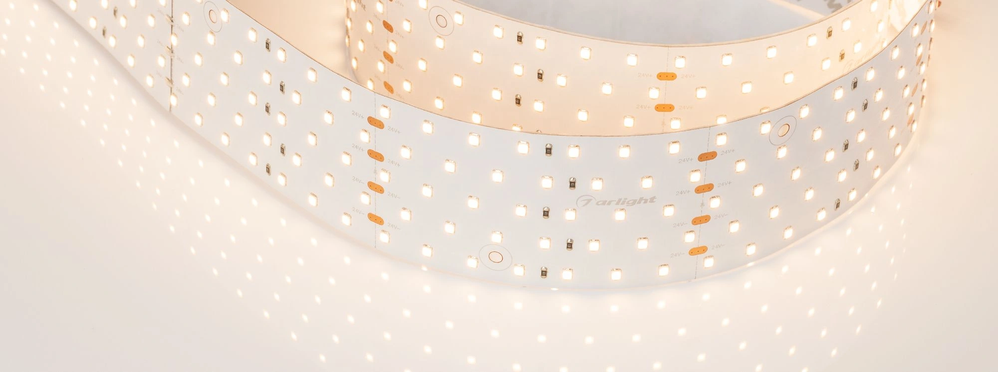 Широкая лента LUX шириной 58 мм с очень высоким индексом цветопередачи (CRI>98). Светодиоды SMD 2835 (350 шт/м) с цветовой температурой 2600–2800 К. Мощность 36 Вт/м, напряжение питания 24 В. Минимальный отрезок 100 мм (35 светодиодов). Может использоваться с любыми профилями. Равномерное свечение по всей ширине профиля. Встроенные широкие линии света для основного освещения. Создание накладных и подвесных светильников из алюминиевого профиля.
