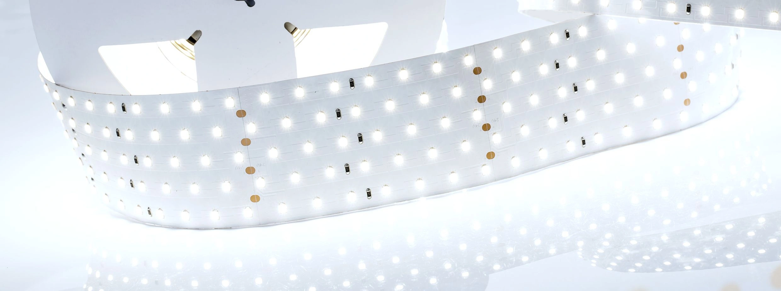 Широкая лента LUX шириной 58 мм с индексом цветопередачи CRI>85. Светодиоды SMD 2835 (350 шт/м) с цветовой температурой 7700–9600 К. Мощность 36 Вт/м, напряжение питания 24 В. Минимальный отрезок 100 мм (35 светодиодов). Может использоваться с любыми профилями. Равномерное свечение по всей ширине профиля. Встроенные широкие линии света для основного освещения. Создание накладных и подвесных светильников из алюминиевого профиля.