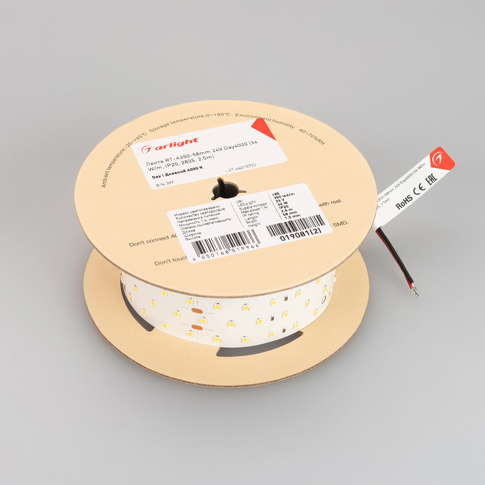 Светодиодная широкая лента (с монтажными отверстиями) S2-A350, открытая. Светодиоды 2835, 350 шт/м (875 шт на 2.5 м), белая плата, ширина 58 мм, скотч 3M. Цвет ДНЕВНОЙ 4000 K, цветопередача CRI>85, угол 120°. Питание 24V, мощность 36 Вт/м (90 Вт на 2.5 м). Размеры 2500x58x1.5 мм. Мин. отрезок 100 мм, 35 светодиодов. Цена за 1 м.