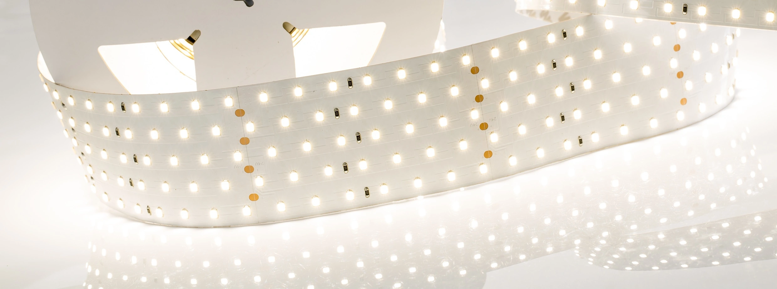 Широкая лента LUX шириной 58 мм с индексом цветопередачи CRI>85. Светодиоды SMD 2835 (350 шт/м) с цветовой температурой 3800–4200 К. Мощность 36 Вт/м, напряжение питания 24 В. Минимальный отрезок 100 мм (35 светодиодов). Может использоваться с любыми профилями. Равномерное свечение по всей ширине профиля. Встроенные широкие линии света для основного освещения. Создание накладных и подвесных светильников из алюминиевого профиля.