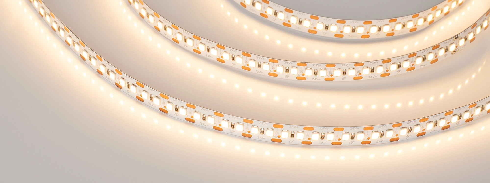 Поставка под заказ от 250м. Светодиодная лента RT-A168, открытая, разрезается по два светодиода. Светодиоды 2835, 168 шт/м (840 шт на 5 м), белая плата, ширина 10 мм, скотч 3M. Цвет ТЁПЛЫЙ 2400 K, цветопередача CRI>80, угол 120°. Питание 24V, мощность 17.3 Вт/м (86.5 Вт на 5 м). Размеры 5000x10x1.5 мм. Мин. отрезок 11.9 мм, 2 светодиода. Цена за 1 м. Обязательна установка на профиль.