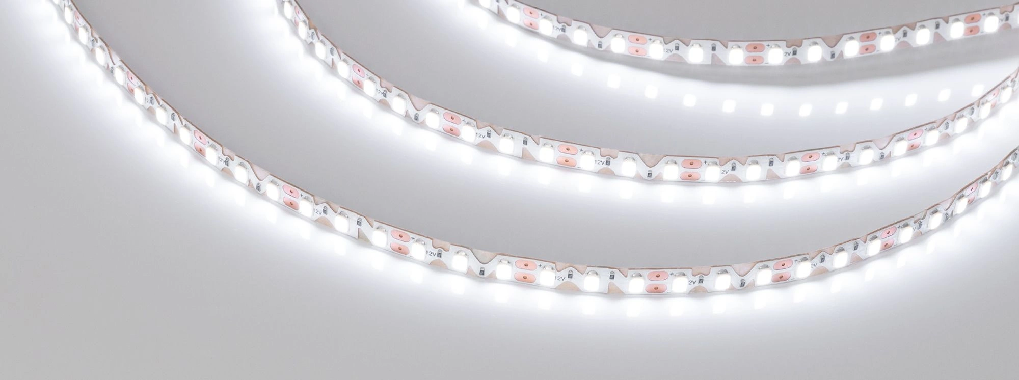 Гибкая лента с фигурной платой в форме волны, легко изгибается на плоскости. Светодиоды smd 2835, 120шт/м (600шт на 5м), белая плата 6мм, скотч 3М. Цвет БЕЛЫЙ 6000-6500K. Питание 12V, мощность 12 Вт/м, угол 120°, цветопередача CRI>90. Размеры 5000х6х1.5мм. Мин.отрезок 25мм, 3 светодиода. Цена за 1м.