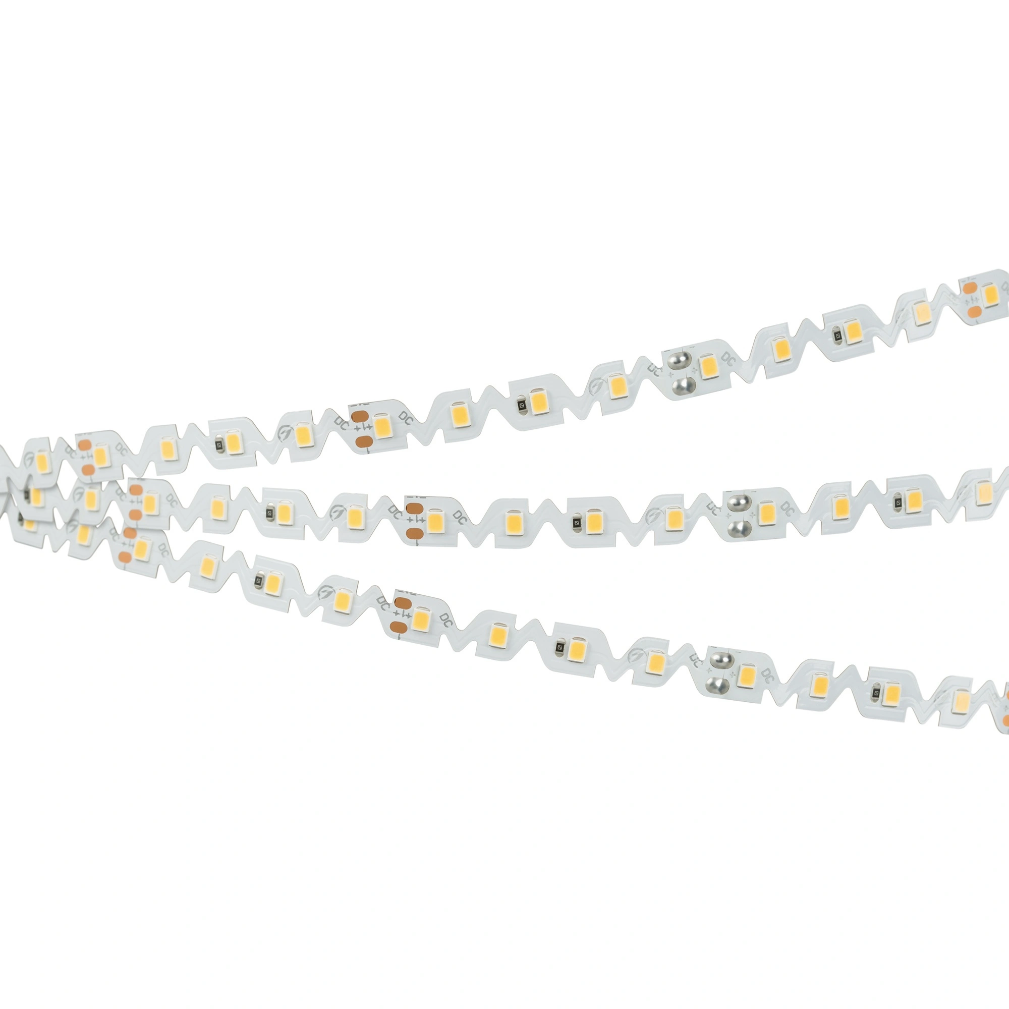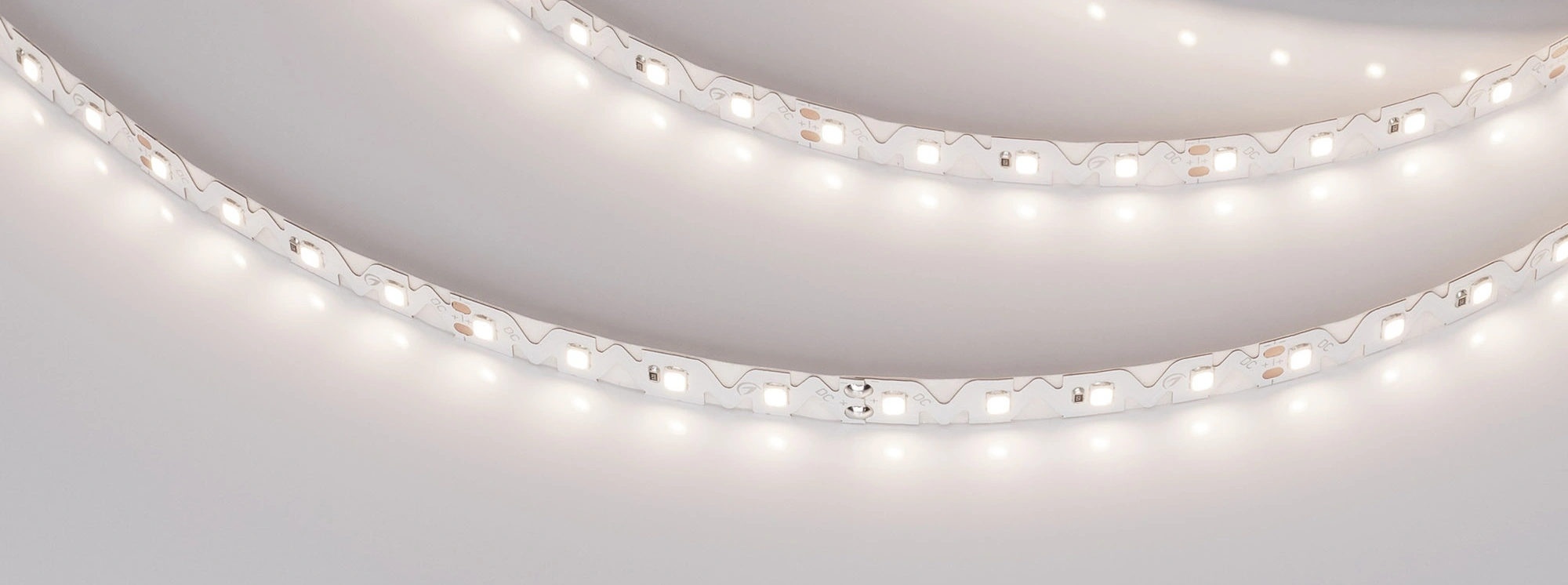 Специальная форма платы в виде волны позволяет изгибать ленты на плоскости. Подходит для установки в криволинейные пазы. Подсветка криволинейных форм. Подсветка букв, витрин и ниш. Минимальный радиус изгиба ленты — 30 мм (изгиб в горизонтальной плоскости).