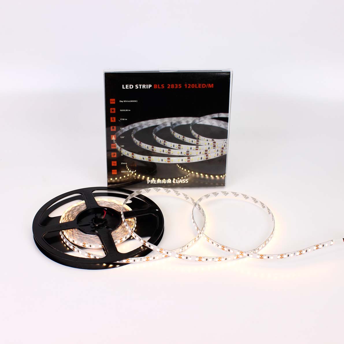 Светодиодная лента премиум класса. Тип светодиода 2835, 120 светодиодов на метр (600шт на 5 метров), угол свечения 120 градусов, цвет свечения дневной белый 4000K. Напряжение 12V, мощность 85W на 5 метров(17W на метр), размеры 8x2,2x5003мм. В ленте используются светодиоды EPISTAR световой поток с 1 светодиода 14Lm. Световой поток на 5 метров 8000Lm. Класс защиты IP33. Катушка 5 метров. Рекомендуется устанавливать на теплоотвод для лучшего охлаждения. Размеры упаковки 180x180x20мм, Вес 200г