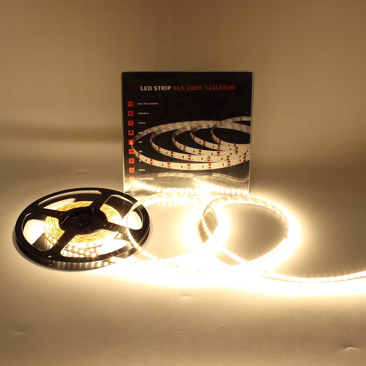 Светодиодная лента премиум класса. Тип светодиода 2835, 120 светодиодов на метр (600шт на 5 метров), угол свечения 120 градусов, цвет свечения дневной теплый белый 3000K. Напряжение 12V, мощность 85W на 5 метров(17W на метр), размеры 8x2,2x5003мм. В ленте используются светодиоды EPISTAR световой поток с 1 светодиода 14Lm. Световой поток на 5 метров 8000Lm. Класс защиты IP33. Катушка 5 метров. Рекомендуется устанавливать на теплоотвод для лучшего охлаждения. Размеры упаковки 180x180x20мм, Вес 200г