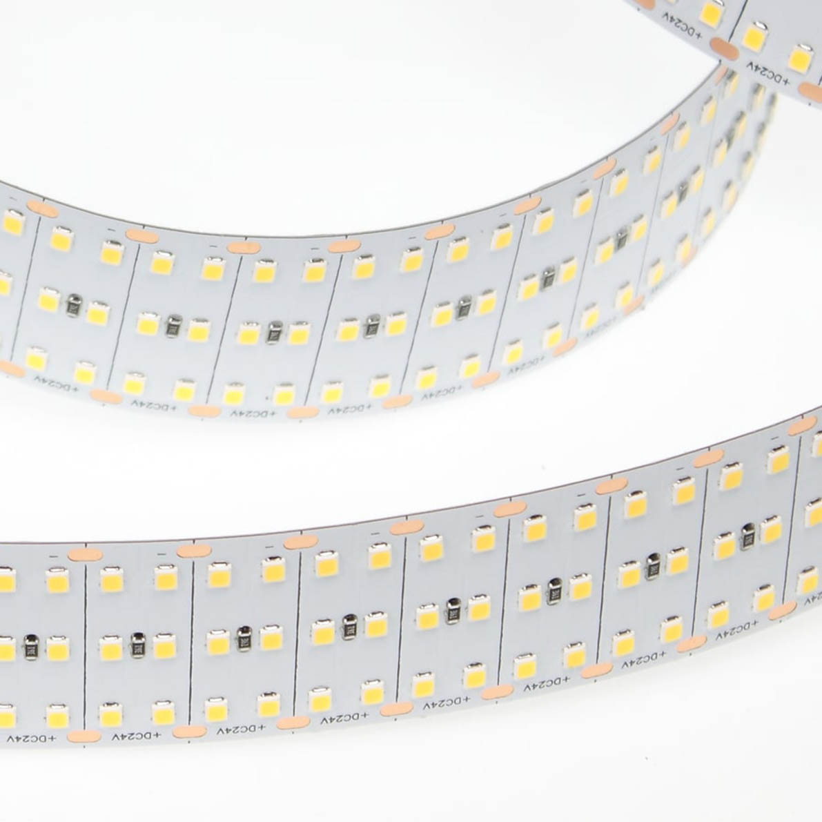 Светодиодная лента LUX class.Треххрядная. Тип светодиода 2835, 480 светодиодов на метр (2400шт на 5метров), угол свечения 120 градусов, цвет свечения дневной белый 4000K. Напряжение 24V, мощность 205W на 5 метров.Световой поток на 1 метр 2900Lm. Класс защиты IP20. Катушка 5 метров. Размеры 5000x36x1.4мм. Габаритный размер упаковки 200x200x55мм. Вес 410г. Шаг нарезки 12.5мм. Рекомендуется устанавливать на теплоотвод для лучшего охлаждения.