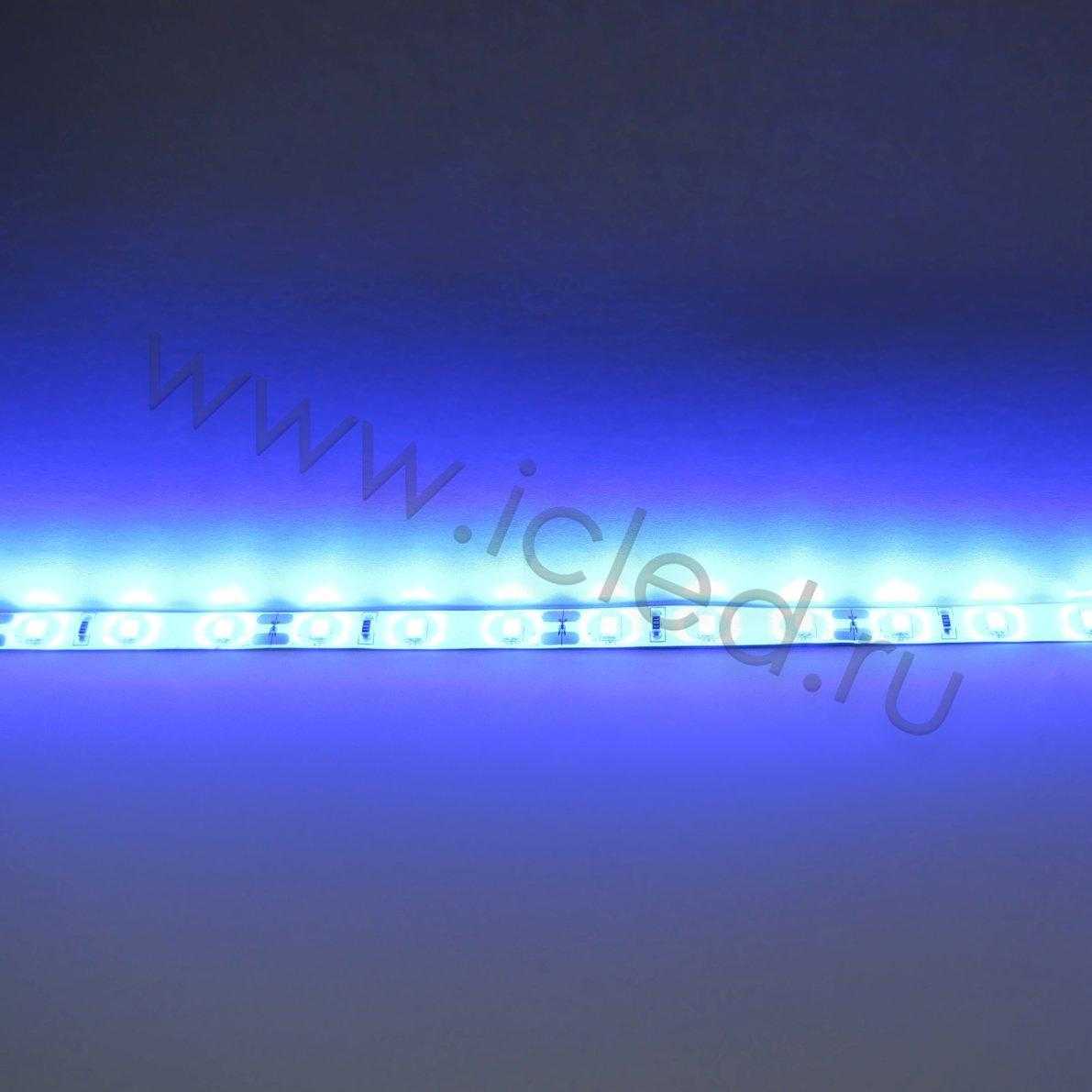 Светодиодная лента LUX class. Тип светодиода 2835, 60 светодиодов на метр (300шт на 5 метров), угол свечения 120 градусов, цвет свечения синий, длина волны 465нм. Напряжение 12V, мощность 60W на 5 метров (12W на метр), размеры 8x2,5x5000мм. В ленте используются светодиоды EPISTAR световой поток с 1 светодиода 12Lm. Световой поток с 5 метров 3600Lm. Класс защиты IP65. Катушка 5 метров. Рекомендуется устанавливать на теплоотвод для лучшего охлаждения.