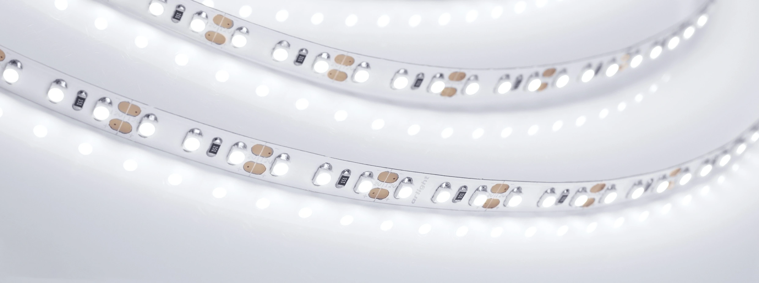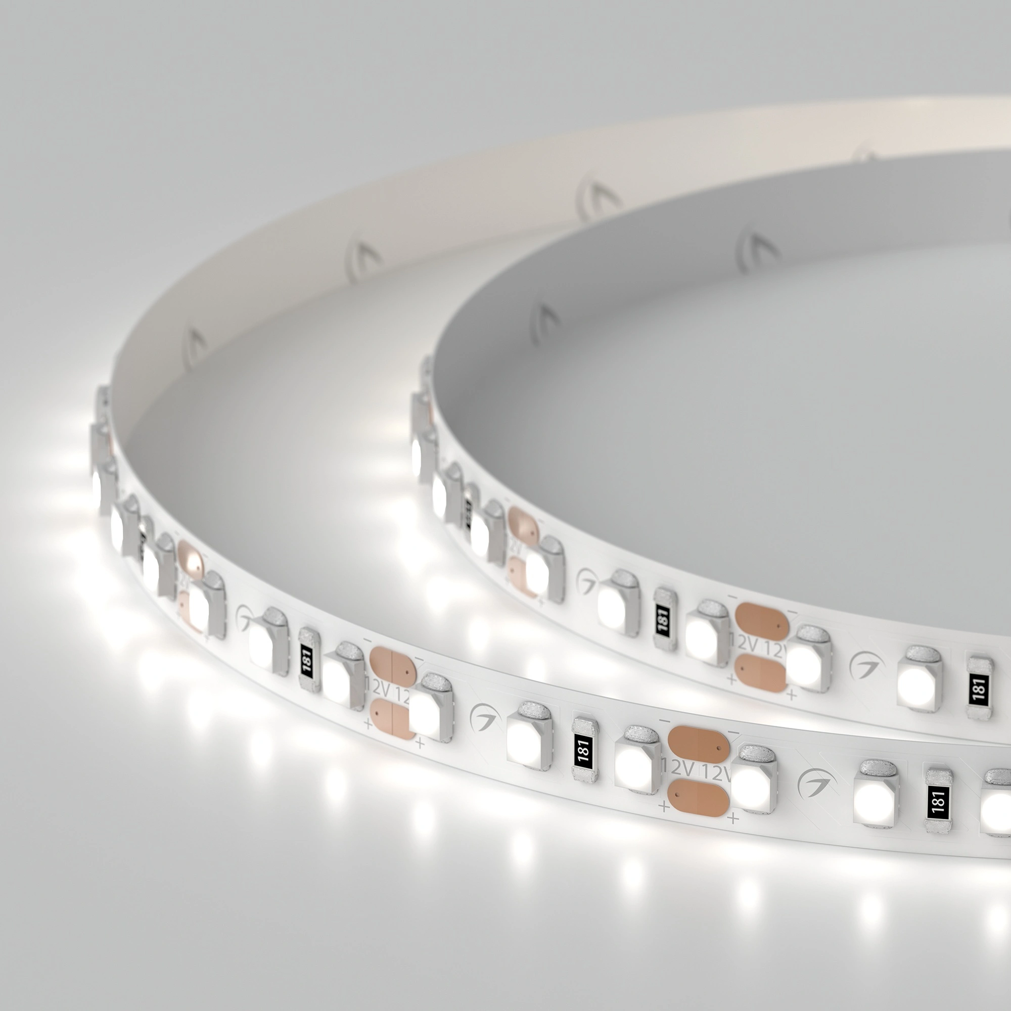 Светодиодная лента серии LUX шириной 8 мм с питанием 12 В и мощностью 9.6 Вт/м. Светодиоды 2x SMD 3528 белого цвета свечения (5800 - 6500 К) с плотностью расстановки 120 шт/м. Индекс цветопередачи CRI>85 и степень пылевлагозащиты IP20. Универсальная лента для организации декоративной подсветки в помещениях: подсветка лестниц, ступеней, плинтусов, ниш, мебельных полок, натяжных потолков и витражей. Управление с помощью диммера для одноцветных лент.