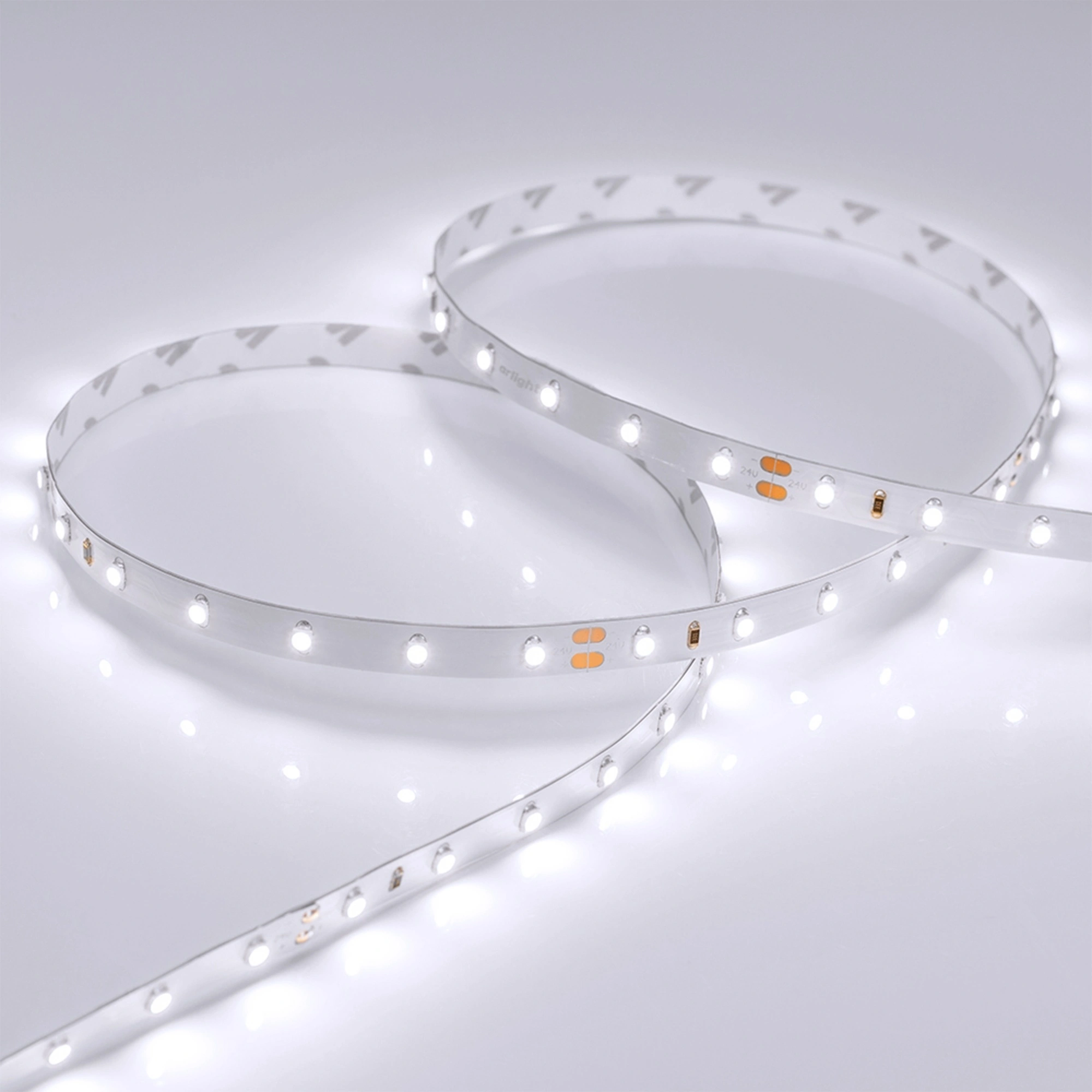 Гибкая лента LUX, светодиоды smd 3528, 60шт/м (300шт на 5м), белая плата 8мм, скотч 3М. Цвет БЕЛЫЙ 5800-6500K. Питание 24V, мощность 4.8 Вт/м (24 Вт на 5м), угол 120°, цветопередача CRI>85. Размеры 5000х8x1.8мм. Мин.отрезок 100мм, 6 шт светодиодов. Пакет 5м. Цена за 1м.