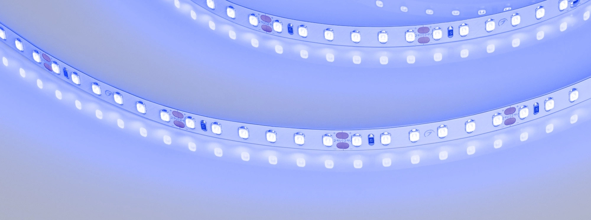 Светодиодная лента RT-A120, открытая. Светодиоды 3528, 120 шт/м (600 шт на 5 м), белая плата, ширина 8 мм, скотч 3M. Цвет СИНИЙ 470 nm, угол 120°. Питание 24V, мощность 9.6 Вт/м (48 Вт на 5 м). Размеры 5000x8x1.5 мм. Мин. отрезок 50 мм, 6 светодиодов. Цена за 1 м.