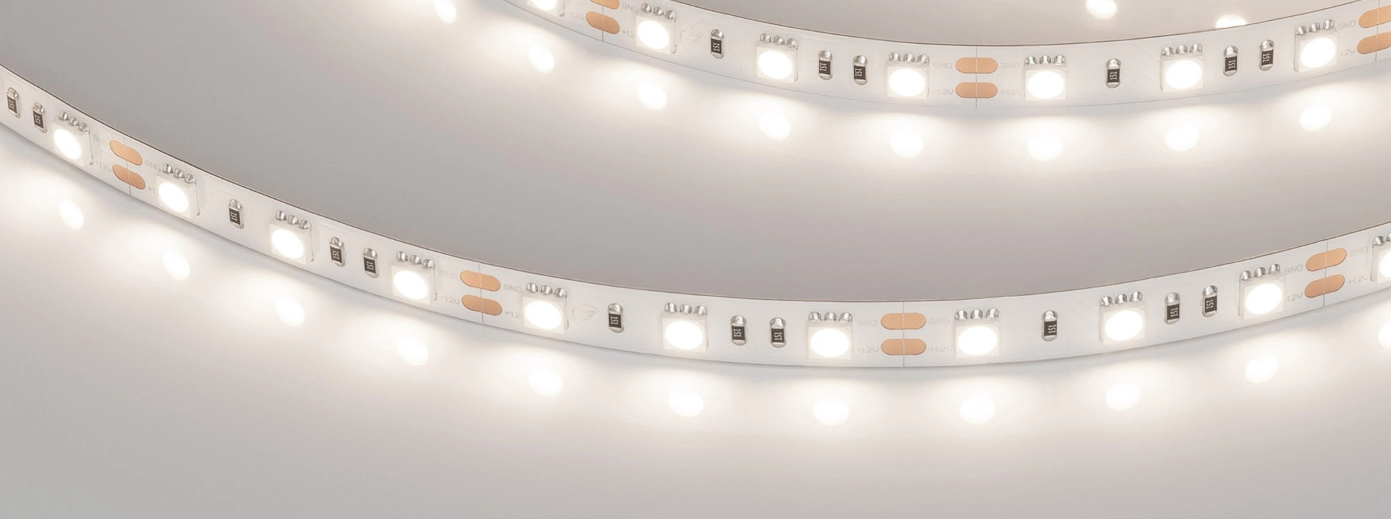 Светодиодная лента LUX шириной 10 мм и мощностью 14.4 Вт/м. Светодиоды SMD 5060 (60 шт/м) дневного белого цвета свечения (3800 - 4200 К). Индекс цветопередачи CRI>85. Напряжение питания 12 В. Минимальный отрезок 50 мм (3 светодиода). Широкий шаг между светодиодами обеспечивает эффект видимых точек светодиодов. Для декоративной подсветки интерьеров, рабочих зон кухни, рекламных конструкций и витрин. Обязательна установка на алюминиевый профиль.
