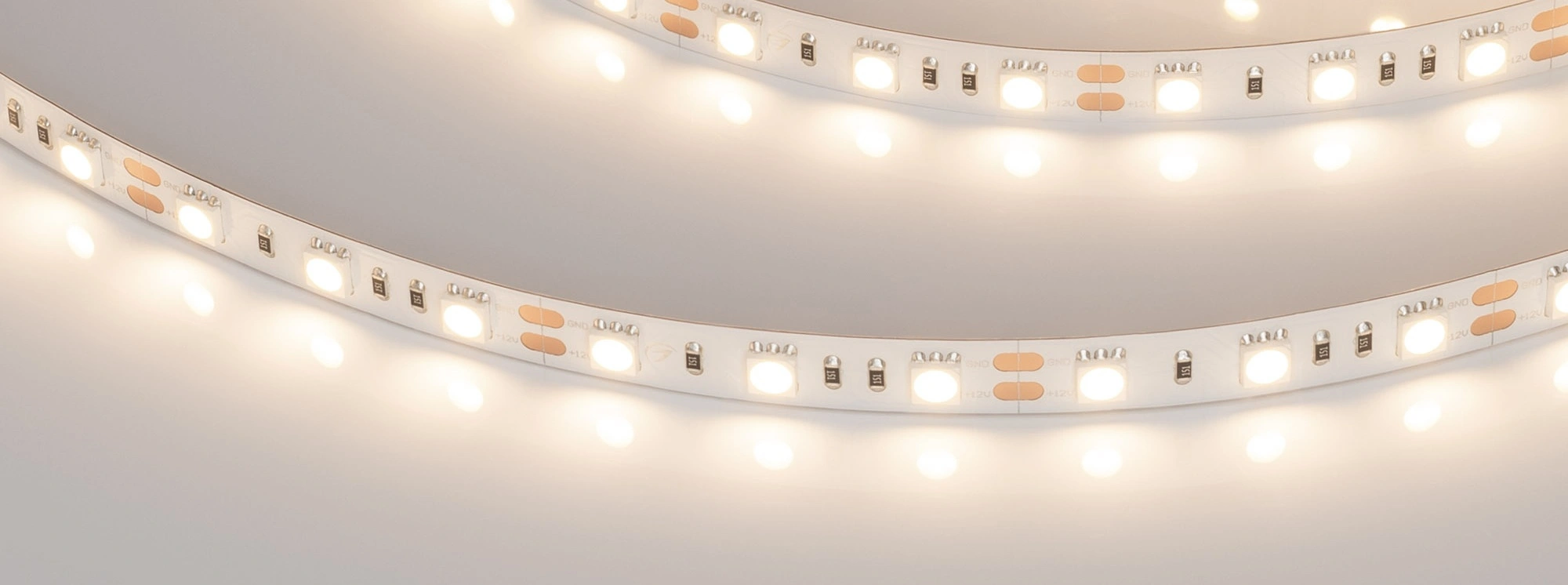 Светодиодная лента LUX шириной 10 мм и мощностью 14.4 Вт/м. Светодиоды SMD 5060 (60 шт/м) теплого белого цвета свечения (2900 - 3100 К). Индекс цветопередачи CRI>85. Напряжение питания 12 В. Минимальный отрезок 50 мм (3 светодиода). Широкий шаг между светодиодами обеспечивает эффект видимых точек светодиодов. Для декоративной подсветки интерьеров, рабочих зон кухни, рекламных конструкций и витрин.