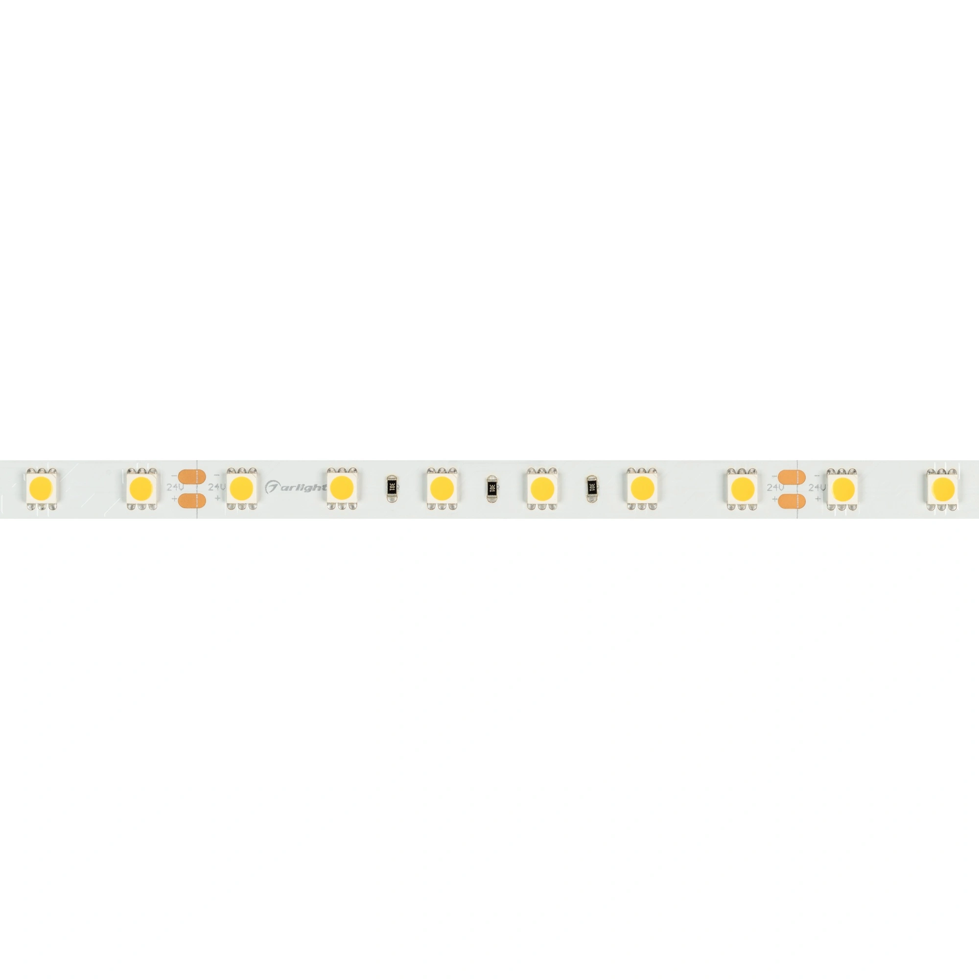 Светодиодная лента RT-B60, открытая. Светодиоды 5060, 60 шт/м (300 шт на 5 м), белая плата, ширина 10 мм, скотч 3M. Цвет ТЁПЛЫЙ 3000 K, цветопередача CRI>85, угол 120°. Питание 24V, мощность 14.4 Вт/м (72 Вт на 5 м). Размеры 5000x10x2.2 мм. Мин.отрезок 100 мм, 6 светодиодов. Цена за 1 м.