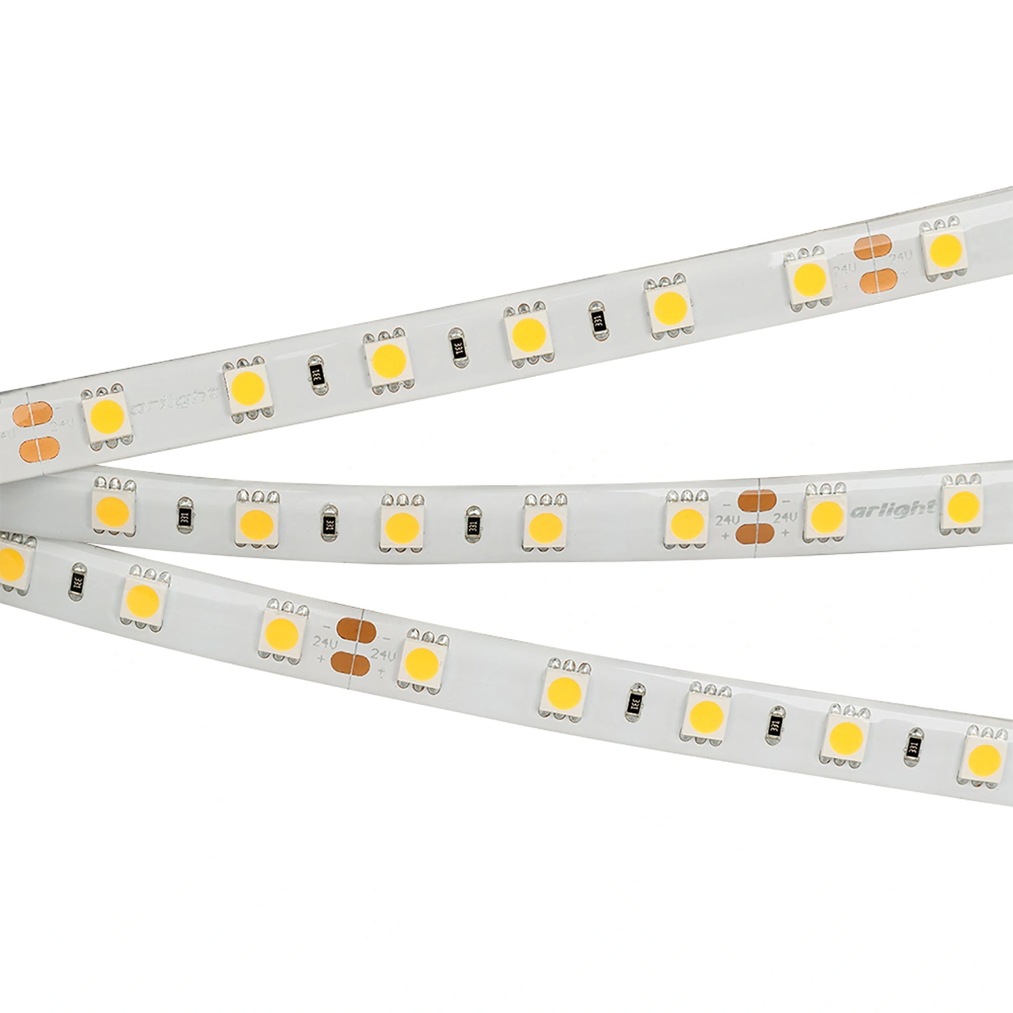 Светодиодная лента RTW-SE-B60, герметичная IP65 (SE-силиконовый верхний слой). Светодиоды 5060, 60 шт/м (300 шт на 5 м), белая плата, ширина 10 мм, скотч 3M. Цвет ТЁПЛЫЙ 3000 K, цветопередача CRI>85, угол 120°. Питание 24V, мощность 14.4 Вт/м (72 Вт на 5 м). Размеры 5000x10x2.7 мм. Мин. отрезок 100 мм, 6 светодиодов. Цена за 1 м.