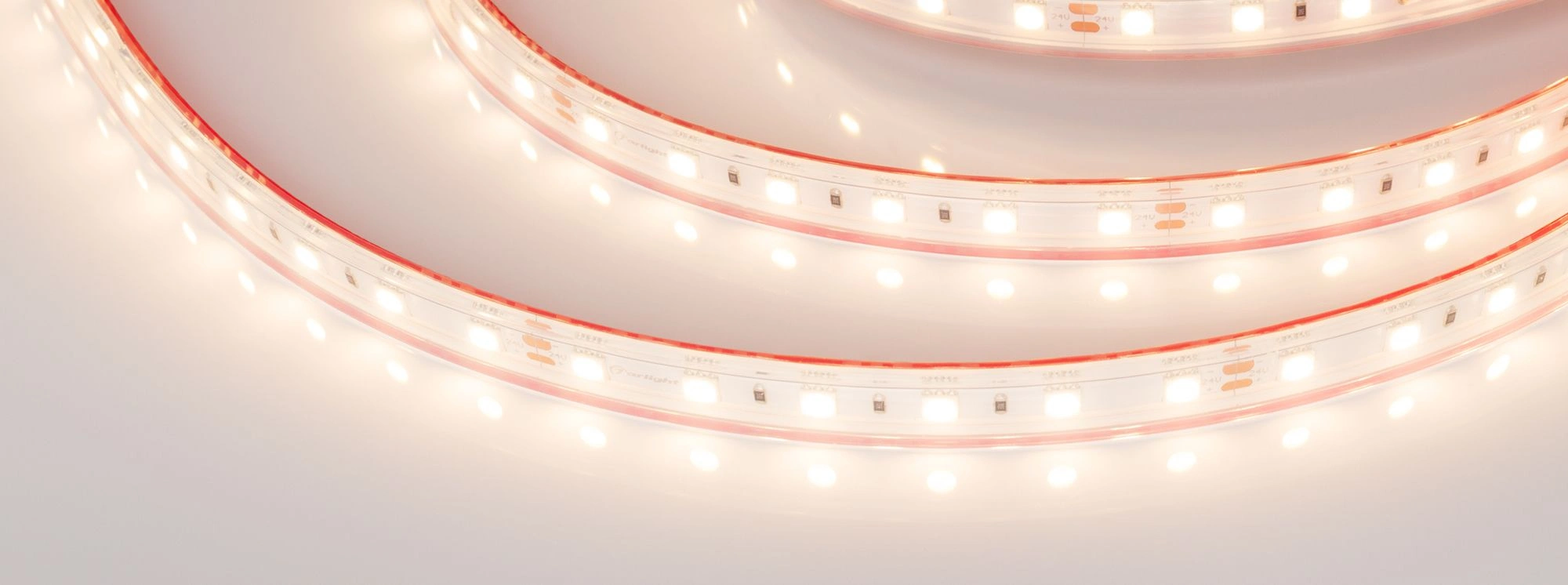 Герметичная светодиодная лента LUX шириной 12 мм с высокой степенью пылевлагозащиты IP67 (силикон, экструзия). Светодиоды SMD 5060 (60 шт/м) с теплым белым цветом свечения (3000 К), индекс цветопередачи CRI>85. Мощность 14.4 Вт/м, напряжение питания 24 В. Минимальный отрезок 100 мм (6 светодиодов). Освещение интерьеров и создание декоративной подсветки, оформление наружной рекламы и витрин. Использование в помещениях и на улице.