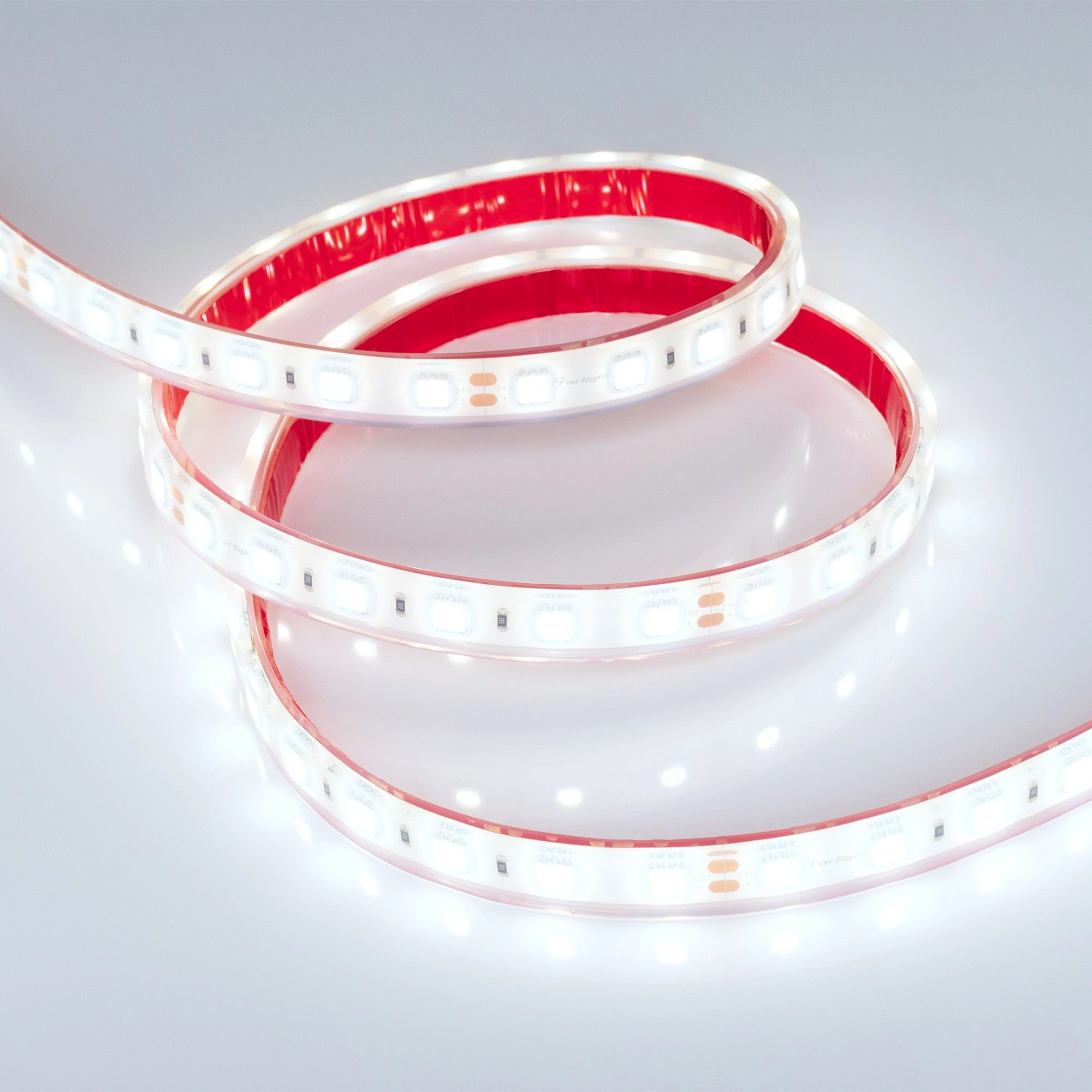 Светодиодная лента RTW-PFS-B60, герметичная IP68 (PFS-полная силиконовая экструзия). Светодиоды 5060, 60 шт/м (300 шт на 5 м), белая плата, ширина 13 мм, скотч 3M. Цвет ХОЛОДНЫЙ 10000K, цветопередача CRI>80, угол 120°. Питание 24V, мощность 14.4 Вт/м (72 Вт на 5 м). Размеры 5000x13x5.5 мм. Мин. отрезок 100 мм, 6 светодиодов. Цена за 1 м.