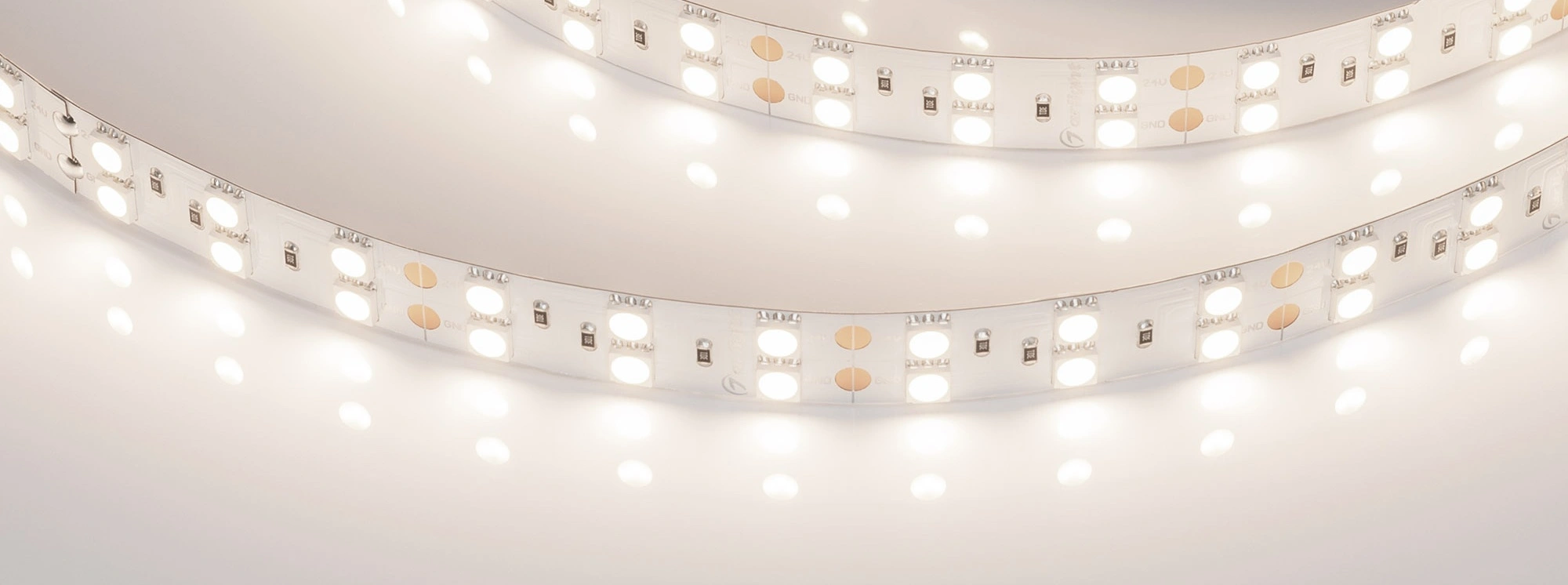 Широкая двухрядная светодиодная лента LUX шириной 15 мм. Светодиоды SMD 5060 (120 шт/м) с дневным белым цветом свечения (3800–4200 К). Мощность 28.8 Вт/м, напряжение питания 24 В. Минимальный отрезок 50 мм (6 светодиодов). Декоративная подсветка интерьера, потолочных ниш, рабочих зон кухни, мебели. Подсветка рекламных конструкций и витрин. Обязательна установка на профиль.