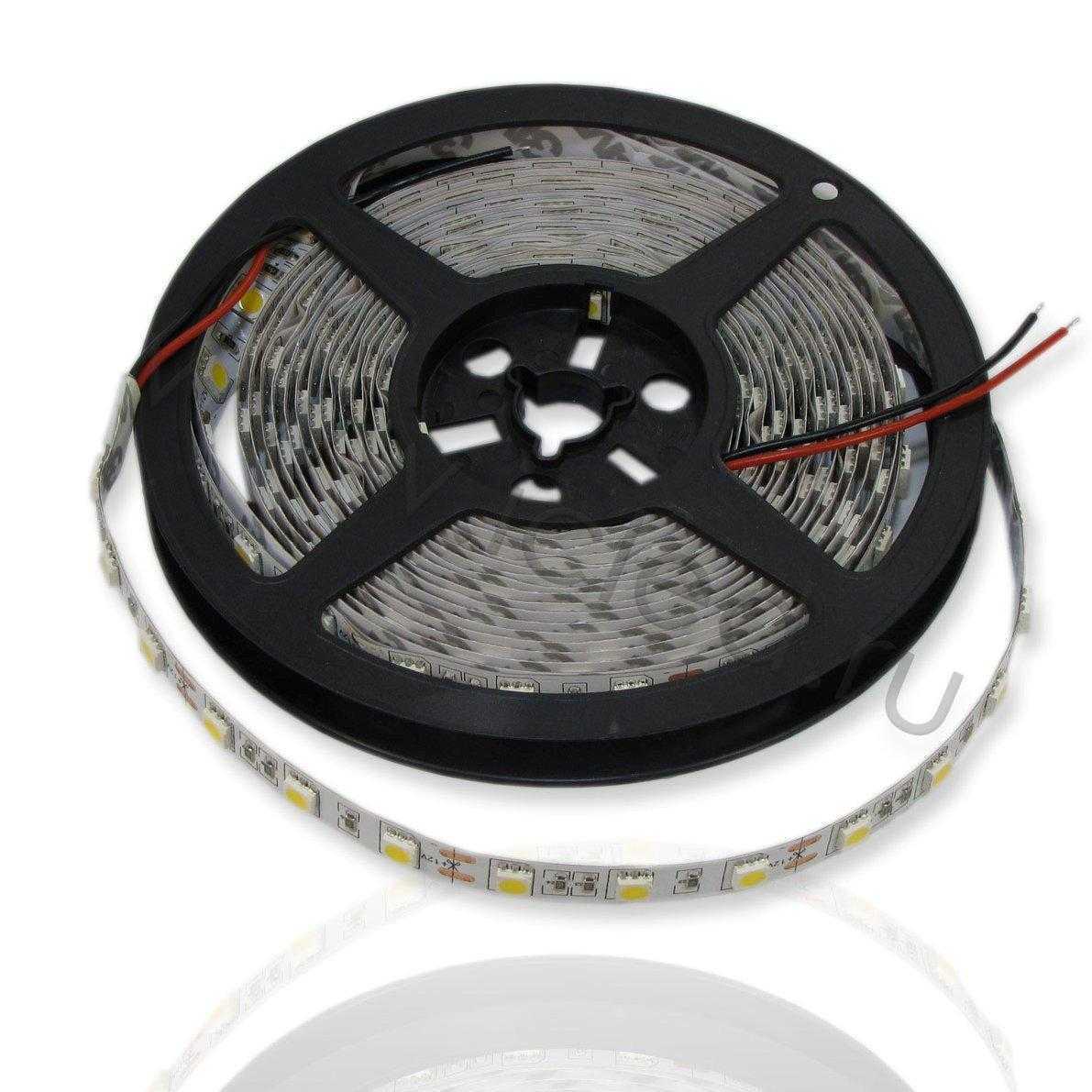 Светодиодная лента Standart class.Тип светодиода 5050, 60 светодиодов на метр (300шт на 5метров), угол свечения 120 градусов, цвет свечения теплый белый 2900-3200K. Напряжение 12V, мощность 72W на 5метров (14,4W на метр), размеры 10x2x5000мм.Световой поток с 1 светодиода 7-8 Lm.Световой поток с 5 метров 2100-2400 Lm. Класс защиты IP20. Катушка 5 метров.