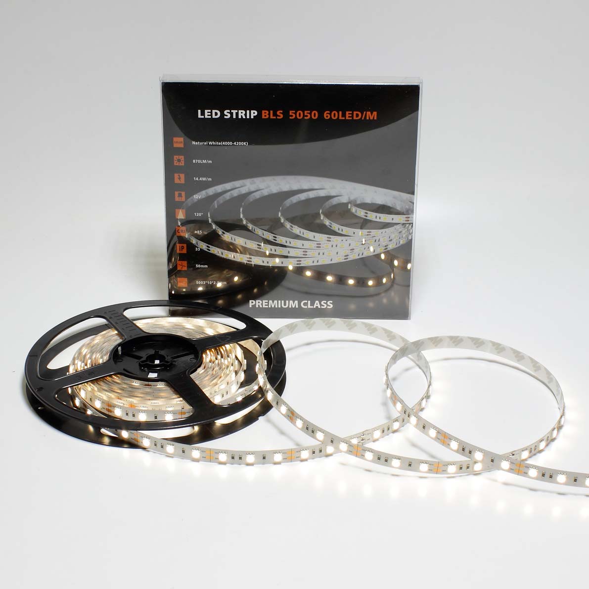 Светодиодная лента премиум класса. Тип светодиода 5050, 600 светодиодов на метр (300шт на 5 метров), угол свечения 120 градусов, цвет свечения дневной белый 4000-4200K. Напряжение 12V, мощность 72W на 5 метров(14,4W на метр), размеры 10x2,2x5003мм. В ленте используются светодиоды EPISTAR световой поток с 1 светодиода 14,6Lm. Световой поток на 5 метров 4400Lm. Класс защиты IP33. Катушка 5 метров. Размеры упаковки 180x180x20мм, Вес 200г