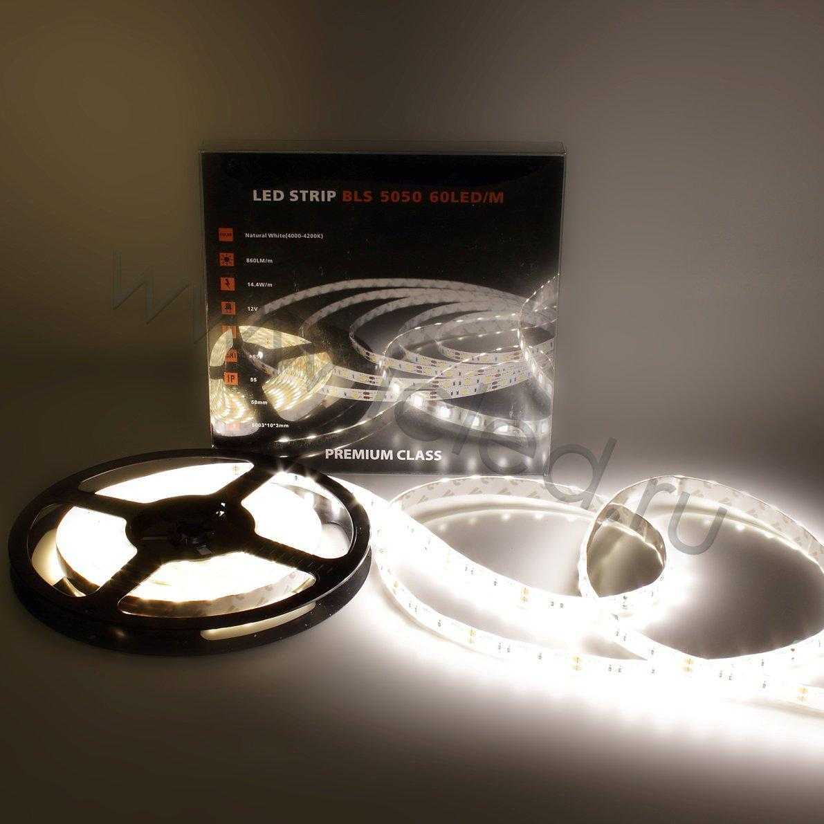 Светодиодная лента премиум класса. Тип светодиода 5050, 60 светодиодов на метр (300шт на 5 метров), угол свечения 120 градусов, цвет свечения дневной белый 4000-4200K. Напряжение 12V, мощность 72W на 5 метров(14,4W на метр), размеры 10x3x5003мм. В ленте используются светодиоды EPISTAR световой поток с 1 светодиода 14,3Lm. Световой поток на 5 метров 4290Lm. Класс защиты IP65 (IP55). Катушка 5 метров. Размеры упаковки 180x180x20мм, Вес 200г