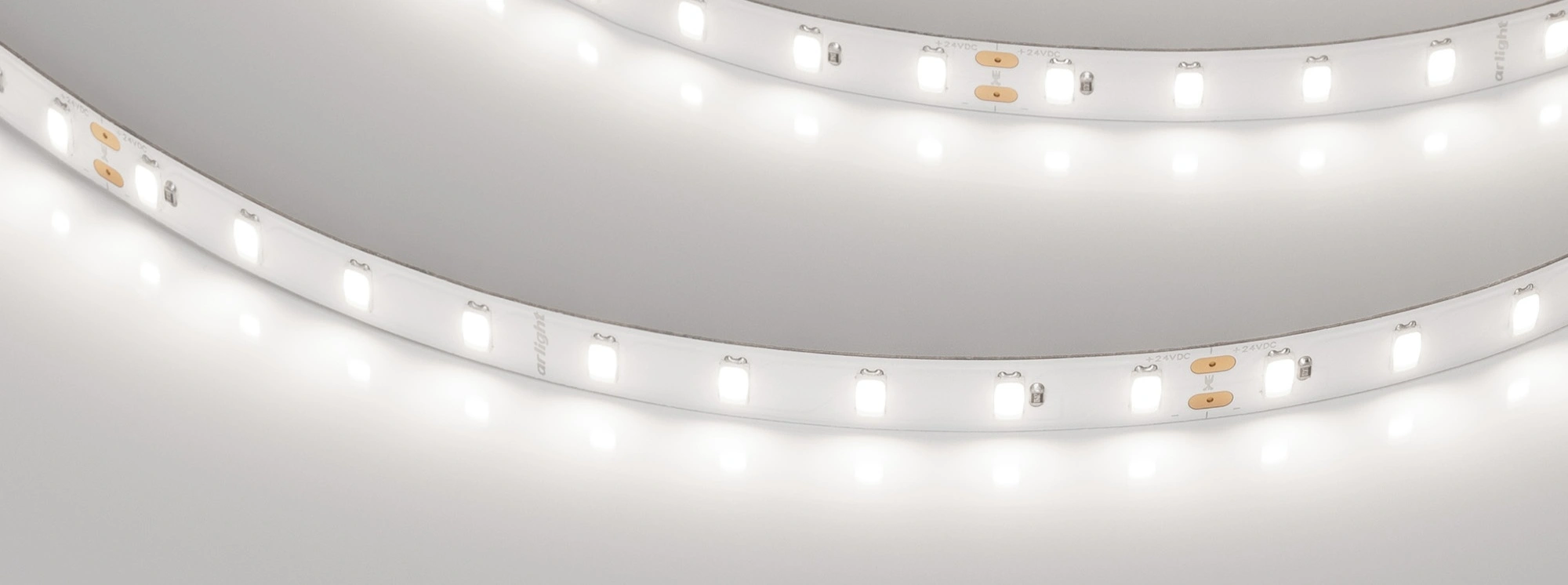 Светодиодная лента ULTRA-C72, открытая IP20. Светодиоды 5630, 72 шт/м (360 шт на 5 м), белая плата, ширина 10 мм, скотч 3M. Цвет ДНЕВНОЙ 5000 K, цветопередача CRI>80, угол 120°. Питание 24 В, мощность 7.2 Вт/м (36 Вт на 5 м). Размеры 5000x10x1.4 мм. Мин. отрезок 125 мм, 9 светодиодов. Цена за 1 м.
