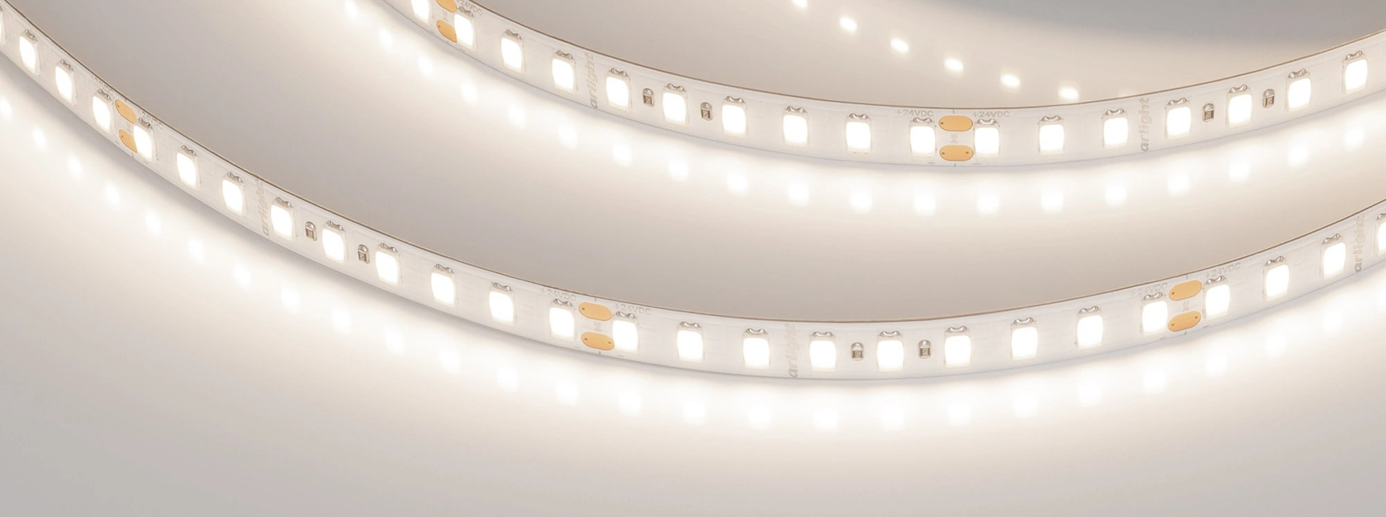 Светодиодная лента ULTRA-C126, открытая IP20. Светодиоды 5630, 126 шт/м (630 шт на 5 м), белая плата, ширина 10 мм, скотч 3M. Цвет ДНЕВНОЙ 4000 K, цветопередача CRI>80, угол 120°. Питание 24 В, мощность 14.4 Вт/м (72 Вт на 5 м). Размеры 5000x10x1.4 мм. Мин. отрезок 71.4 мм, 9 светодиодов. Цена за 1 м.