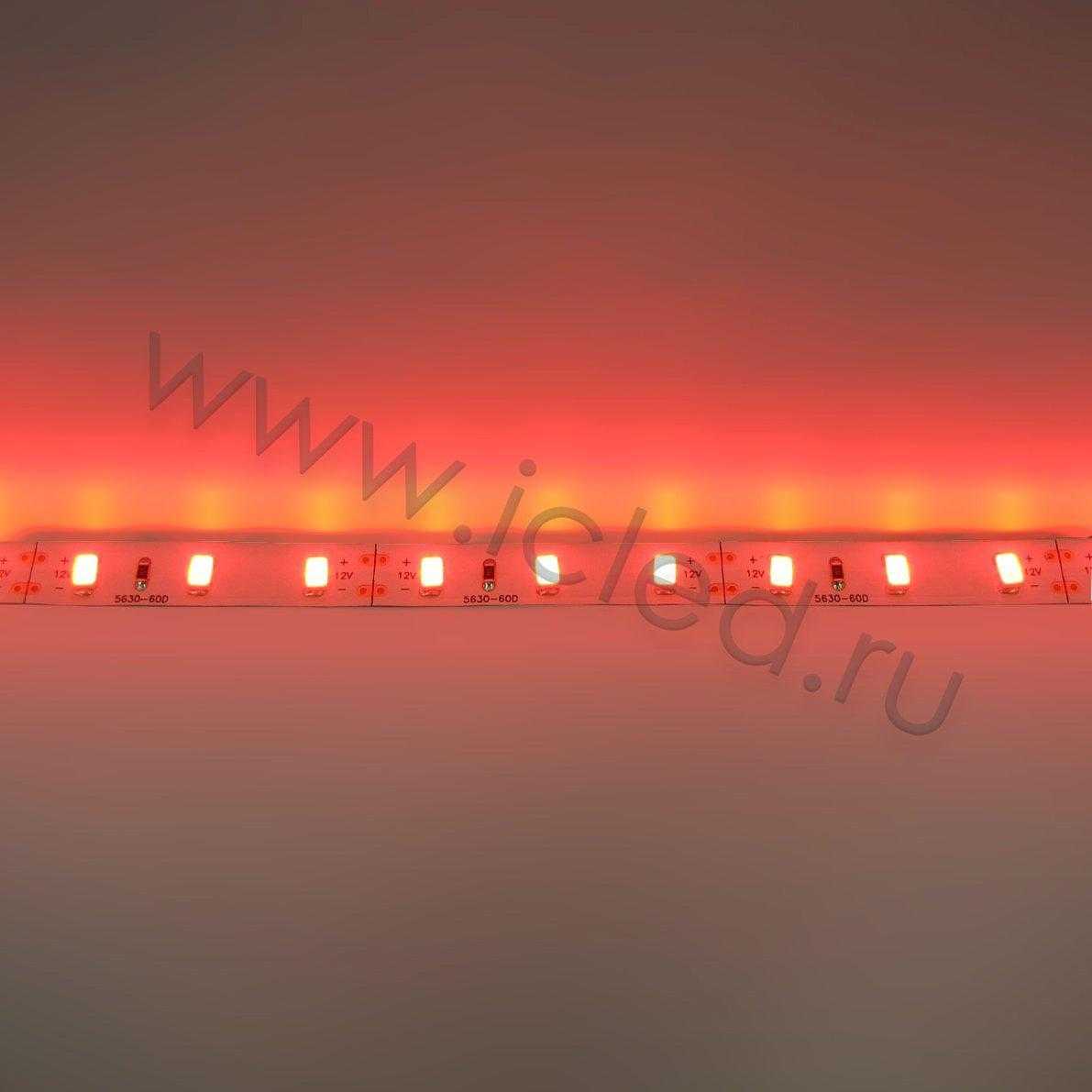 Светодиодная лента Standart PRO class. Тип светодиода 5630, 60 светодиодов на метр (300шт на 5 метров), угол свечения 120 градусов, цвет свечения красный, длина волны 640 нм. Напряжение 12V, мощность 96W на 5 метров(19,2W на метр), размеры 10x2x5000мм. В ленте используются светодиоды EPISTAR. Класс защиты IP20. Катушка 5 метров.