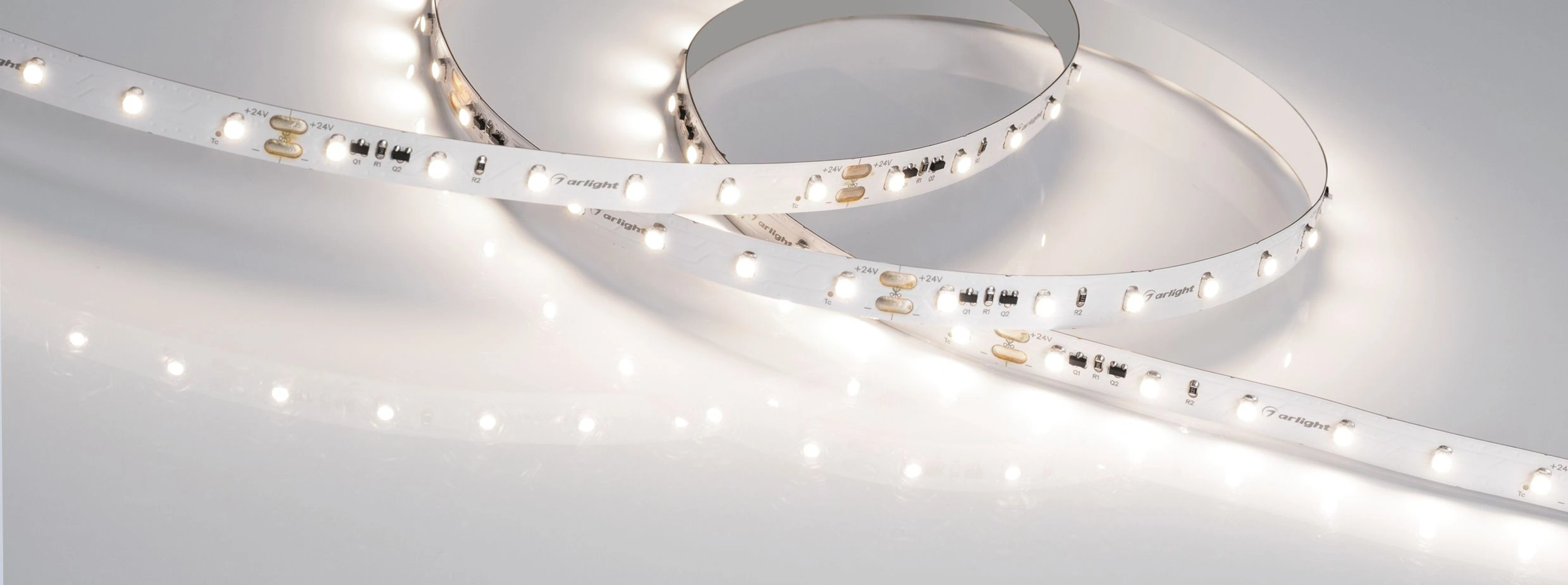 Стабилизированная лента длиной 20 метров и шириной 10 мм. Стабилизаторы тока обеспечивают равномерное свечение по всей длине ленты даже при подключении только с одной стороны. Светодиоды SMD 3528 (60 шт/м) дневного белого цвета свечения (4000–4500 K) с индексом цветопередачи CRI>80. Мощность 4.8 Вт/м, напряжение питания 24 В. Подсветка потолочных ниш, декоративная подсветка, создание контуров рекламных объектов. Совместима с любыми диммерами (ШИМ). Минимальный отрезок 100 мм (6 светодиодов).