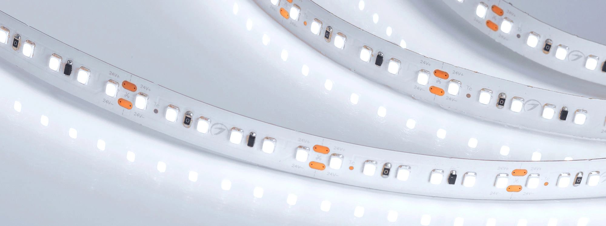 Стабилизированная лента длиной 20 метров и шириной 12 мм. Стабилизаторы тока обеспечивают равномерное свечение по всей длине ленты даже при подключении только с одной стороны. Светодиоды SMD 2835 (120 шт/м) белого цвета свечения (5800–6500 K) с индексом цветопередачи CRI>85. Мощность 9.6 Вт/м, напряжение питания 24 В. Подсветка потолочных ниш, декоративная подсветка, создание контуров рекламных объектов. Совместима с любыми диммерами (ШИМ). Минимальный отрезок 50 мм (6 светодиодов).