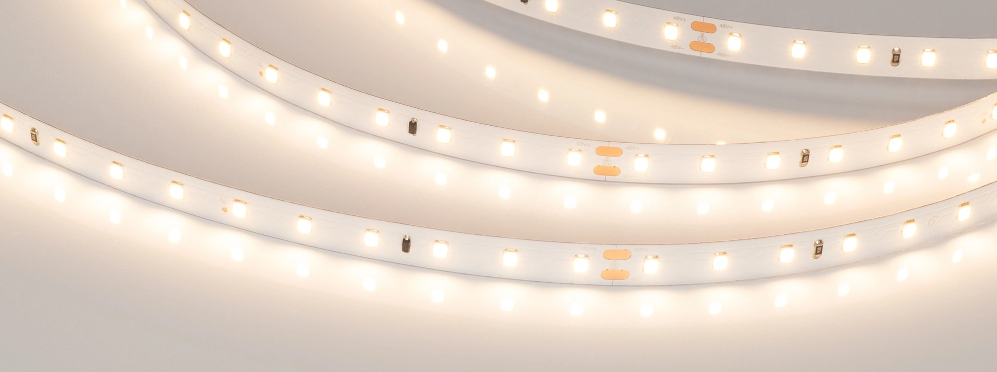 Стабилизированная лента серии A72, тип светодиода SMD2835, 72 светодиода на метр. Длина ленты 60м. Стабилизаторы тока обеспечивают равномерное свечение по всей длине ленты даже при подключении только с одной стороны. Лента применяется для декоративной подсветки интерьеров, потолочных ниш, а также подходит для подсветки рекламных конструкций и витрин.
