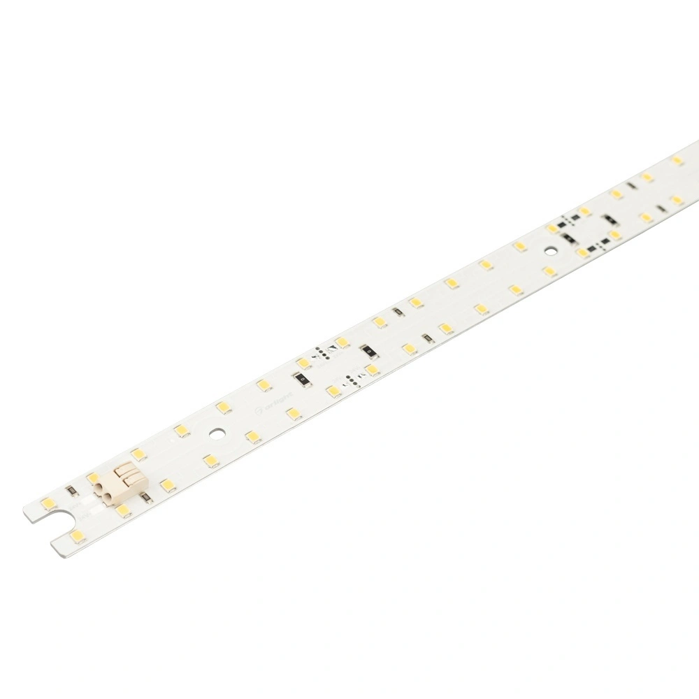 Поставка под заказ от 500 шт.Светодиодная линейка для использования с профилем SL-ARC-3535-LINE. PCB - алюминий, длина 500 мм, 70шт светодиодов SMD 2835. Цвет свечения ТЕПЛЫЙ 2700К, цветопередача CRI>80. Питание 24 В, мощность 9,6 Вт, ток 0.4 А, (уд.мощность 19.2 Вт/м). Размеры 500х20х2,2 мм. Минимальный отрезок 99.8 мм, 14 светодиодов.