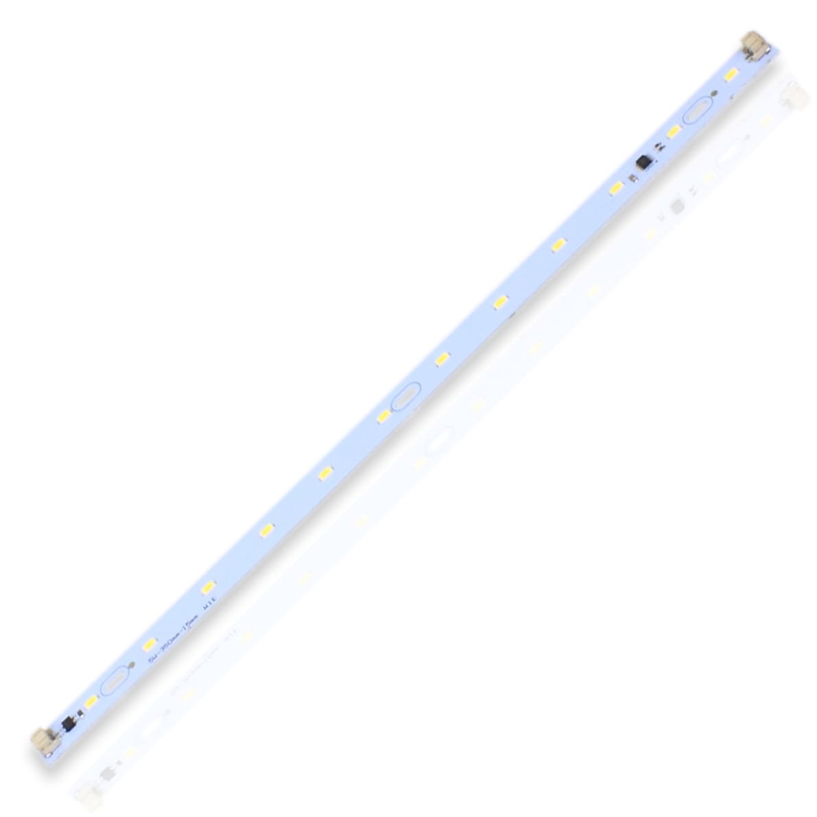Светодиодная линейка на алюминиевой основе. Напряжение 220V, мощность 5W, тип светодиода 2835 - 12 штук, световой поток 430Lm, угол свечения 120 градусов, PF 0,9, цвет свечения дневной белый 4000-4500К. Размеры 350x15x6,8мм. Вес 16г. Внимание! Высокое напряжение! Подключение осуществлять квалифицированным специалистом!
