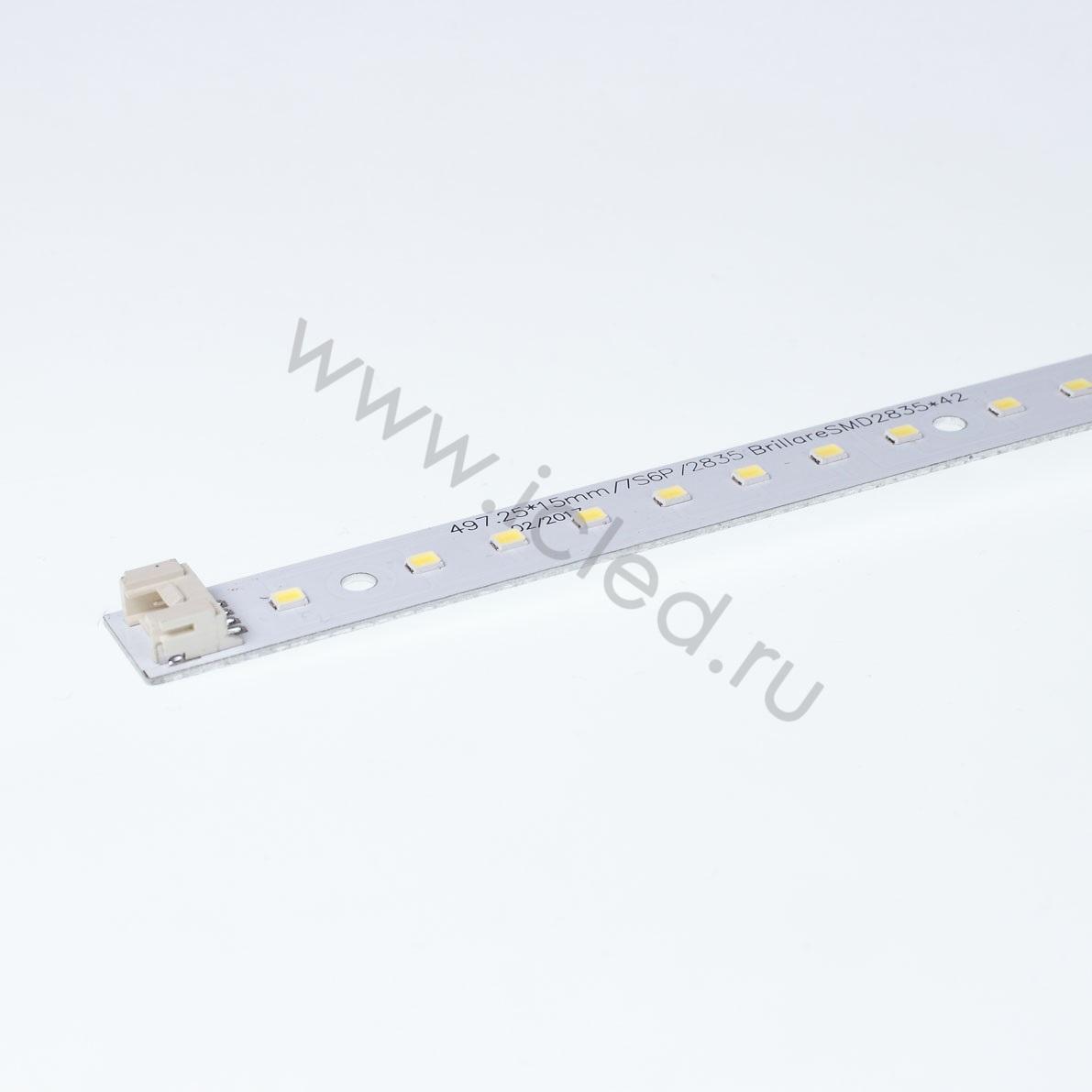 Светодиодная линейка на алюминиевой основе для светильников Армстронг. Напряжение 21-25V, мощность 12W, ток 300mA, тип светодиода 2835 - 42 штук, световой поток 1260Lm, угол свечения 120 градусов, цвет свечения белый 5500К. CRI>80. Размеры 497x15x6,2мм. Вес 23г.