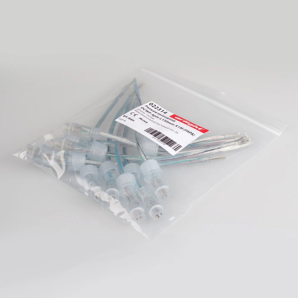 Круглый герметичный разъем DC 4pin ПАПА для соединения отрезков RGB светодиодных лент. Корпус IP65. Провод 22AWG, длина 15 см. Максимальный допустимый ток 2А. Ответный разъем МАМА поставляется отдельно.