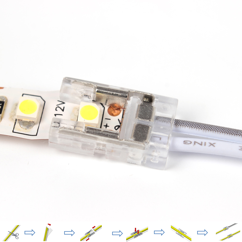 Коннектор соединительный 2pin (с двух сторон), с проводами 150мм, для светодиодных лент с smd и cob светодиодами, с шириной шлейфа 8мм. Максимальный ток 5А, 0-36В. Степень защиты IP20. Размеры 170x9,8x4,4мм. Вес 4г.